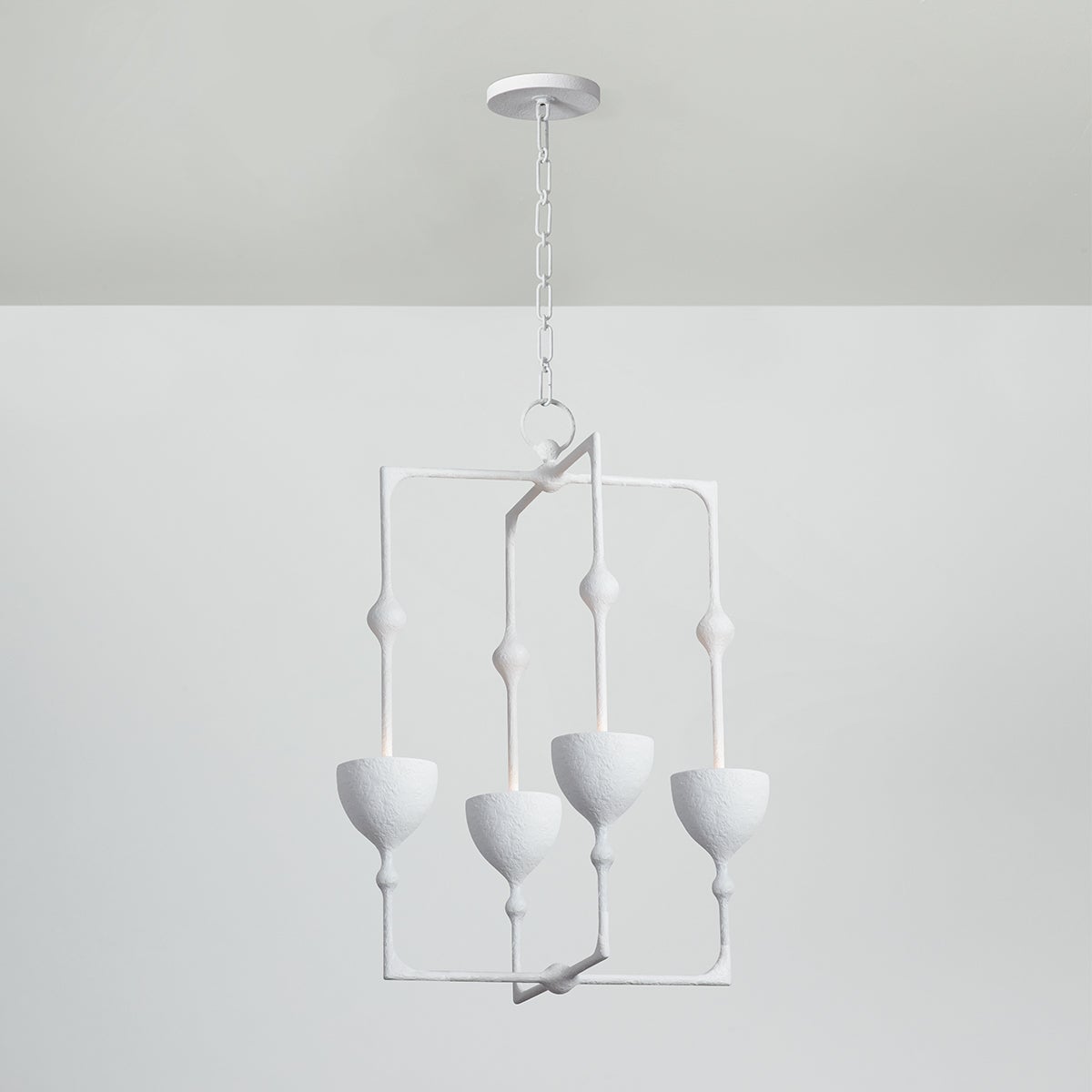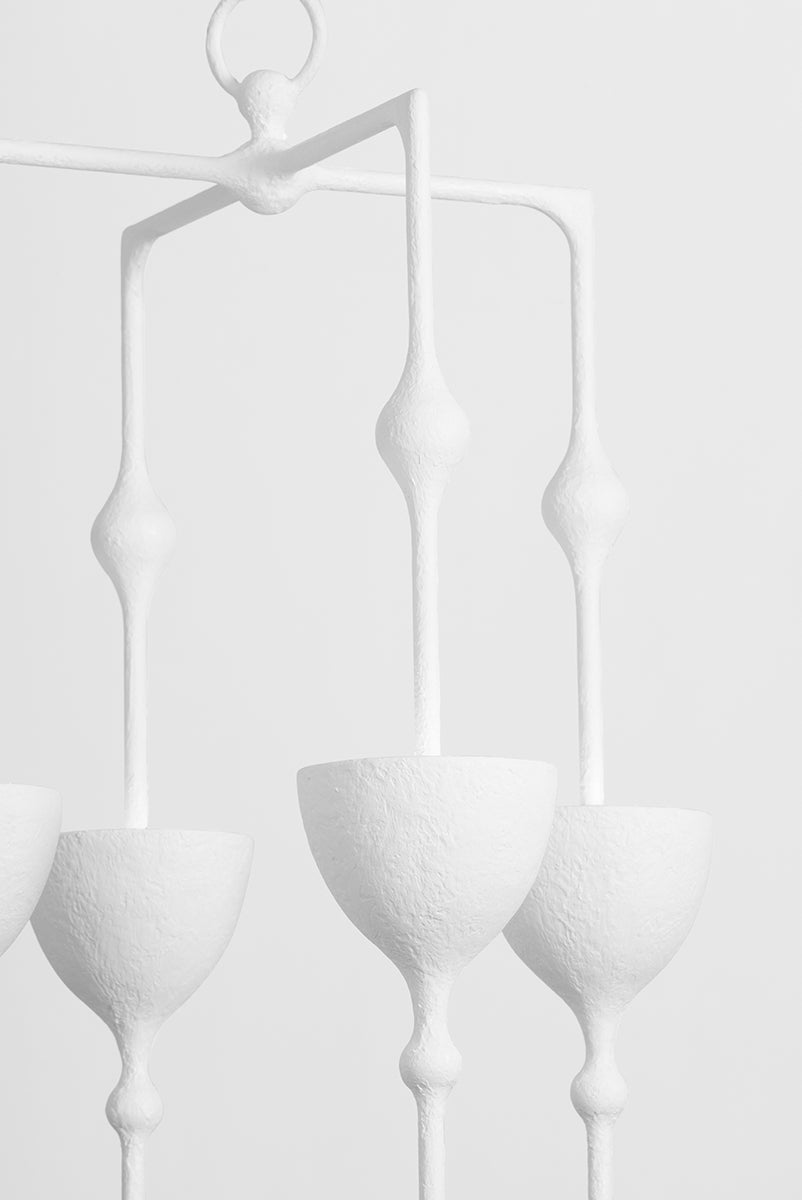 Drawing inspiration from the geometric patterns of Turkish tiles, this LED fixture merges high-concept design with otherworldly beauty. Long biomorphic stems support inverted bowl shades that direct light upwards. Available as a sconce or lantern in two sizes with the choice of a fresh Gesso White or luxurious Vintage Gold Leaf finish.