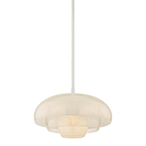 Three nested mushroom shades create the voluminous silhouette of the Auburndale pendant. The layering of clear cloud glass provides levels of ethereal diffusion, softening the light for a more gentle, ambient glow. The metal stem is available in two finishes: Aged Brass for a warm, classic look or Polished Nickel for a more contemporary feel.