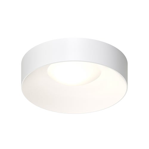 Set within a crisp round drum, the soft curvature of the interior surface reflects the luminance of a shallow dome diffuser. The result is a glow of unified radiance from within the volume, which delivers brightness with a soft ambiance within a space.