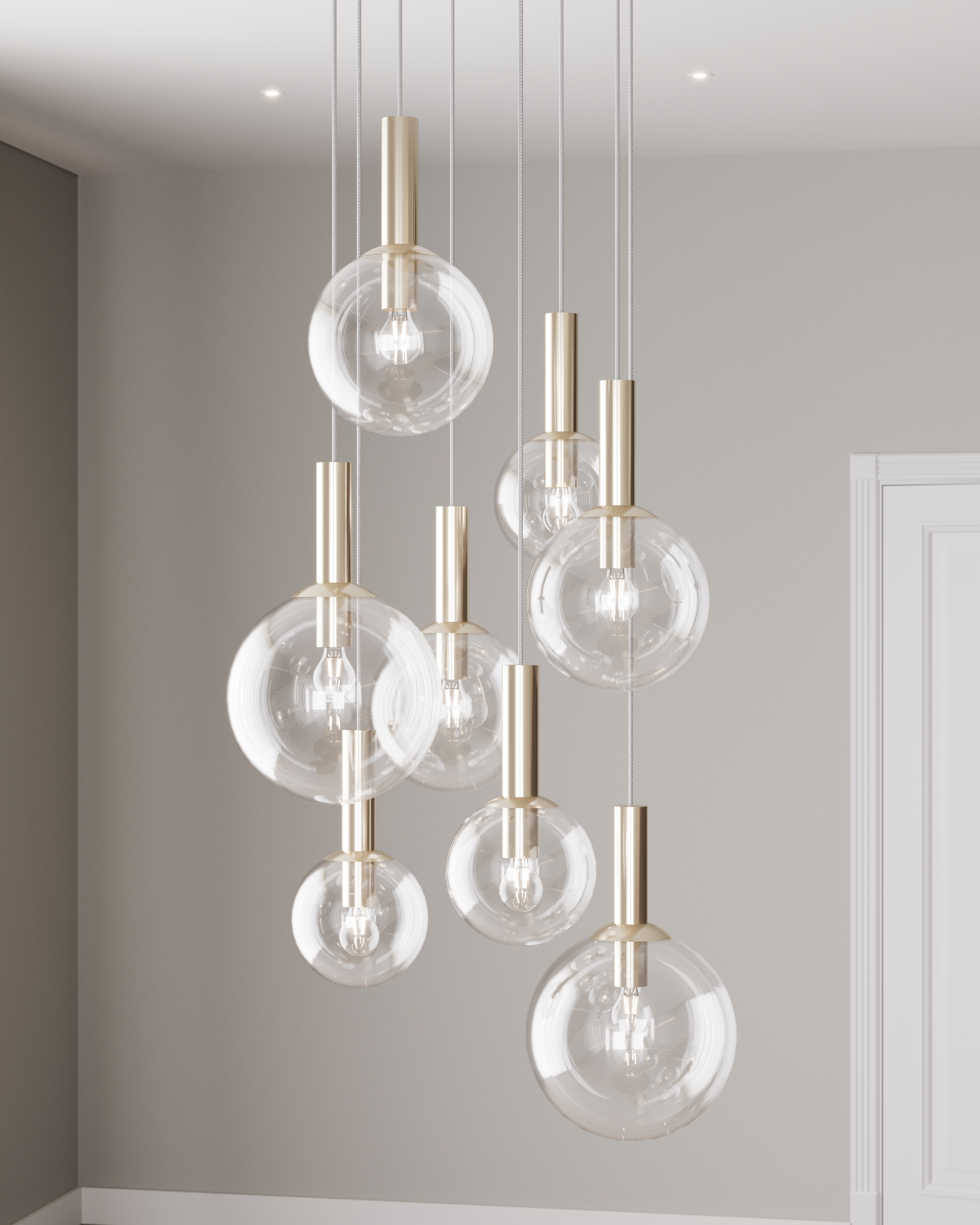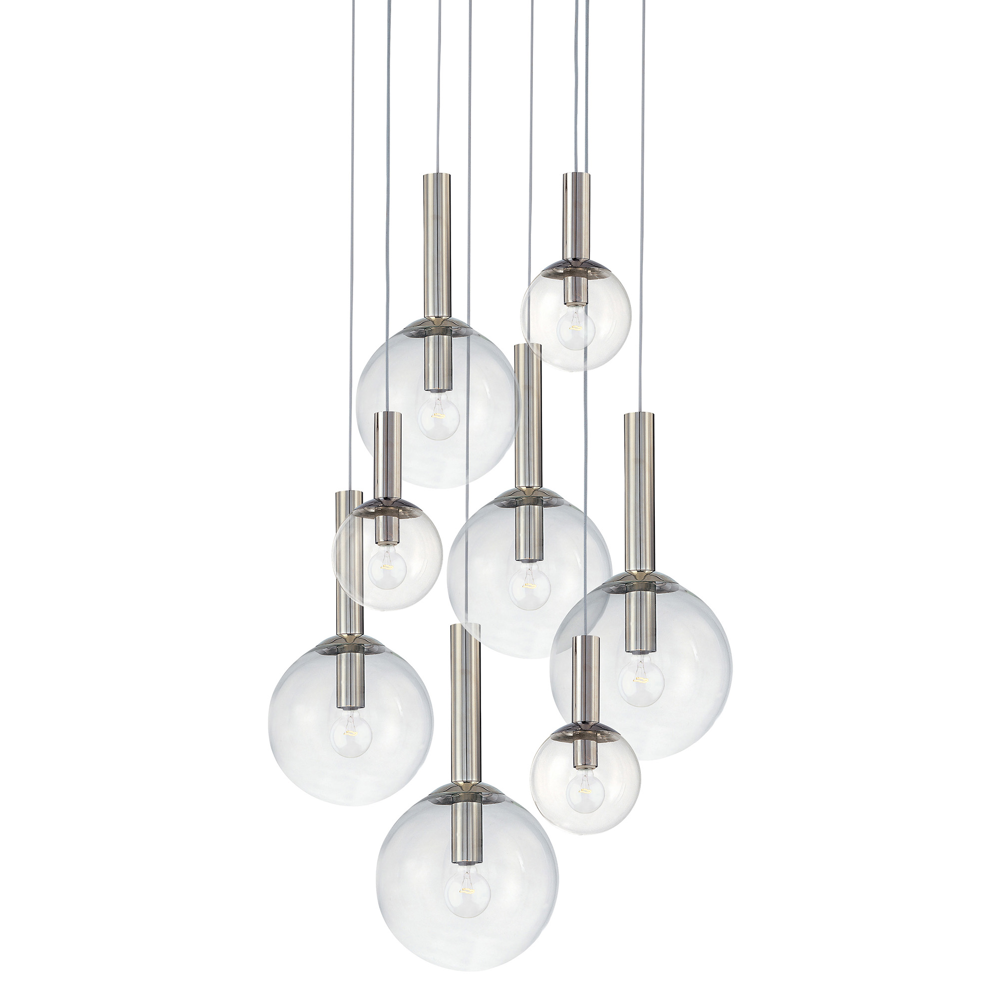 Playful, formal, casual yet classic, Bubbles is an iconic, mid-century modern lighting design of infinite variety and proportions. Its straightforward clarity echoes the modern pathos of form from function as its aesthetic basis. Also available as a single pendant.