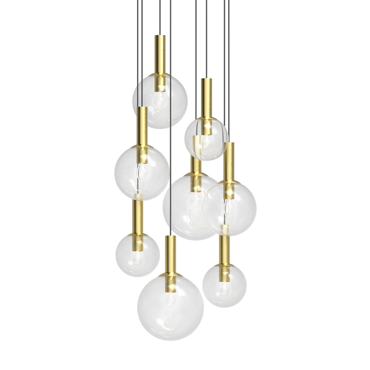 Playful, formal, casual yet classic, Bubbles is an iconic, mid-century modern lighting design of infinite variety and proportions. Its straightforward clarity echoes the modern pathos of form from function as its aesthetic basis. Also available as a single pendant.