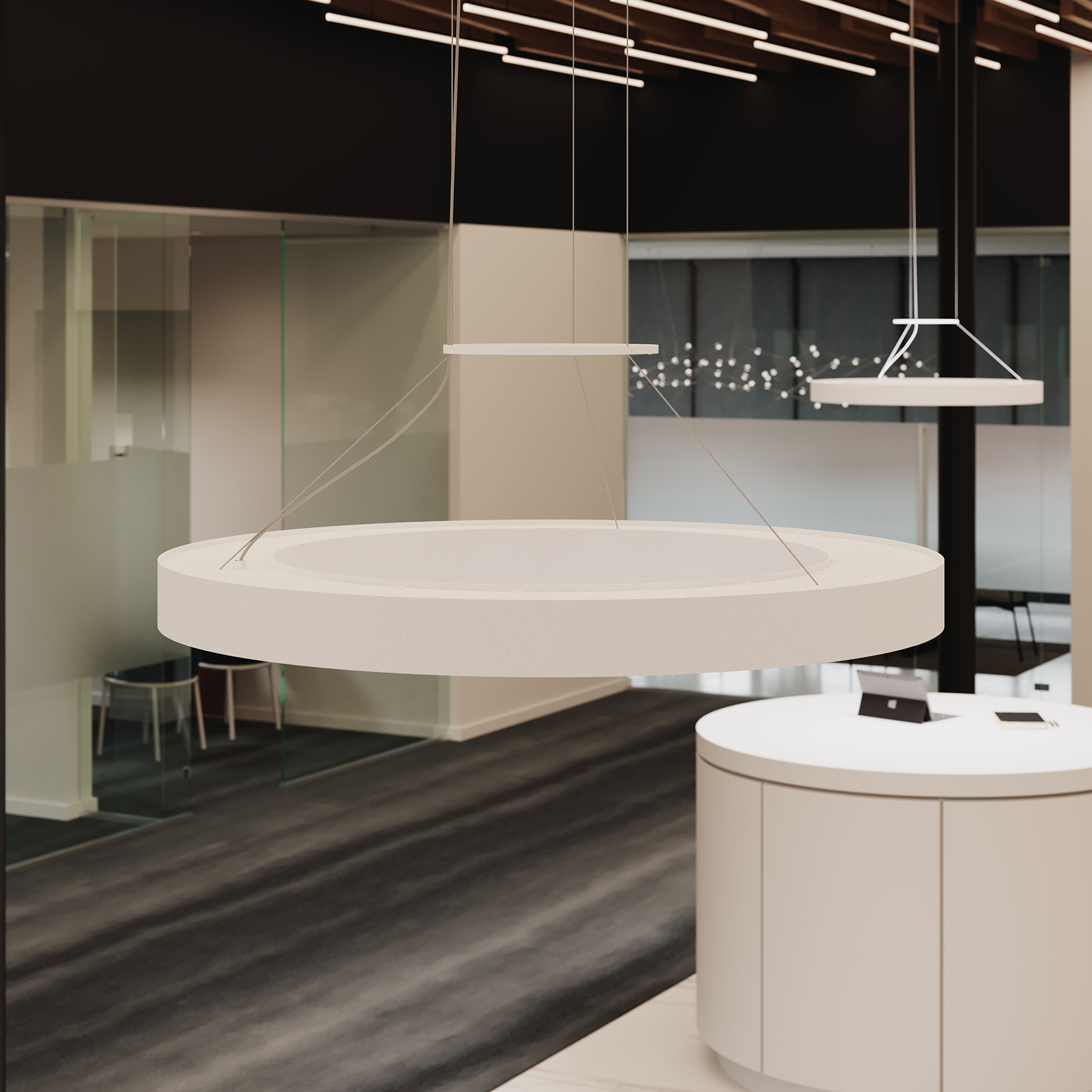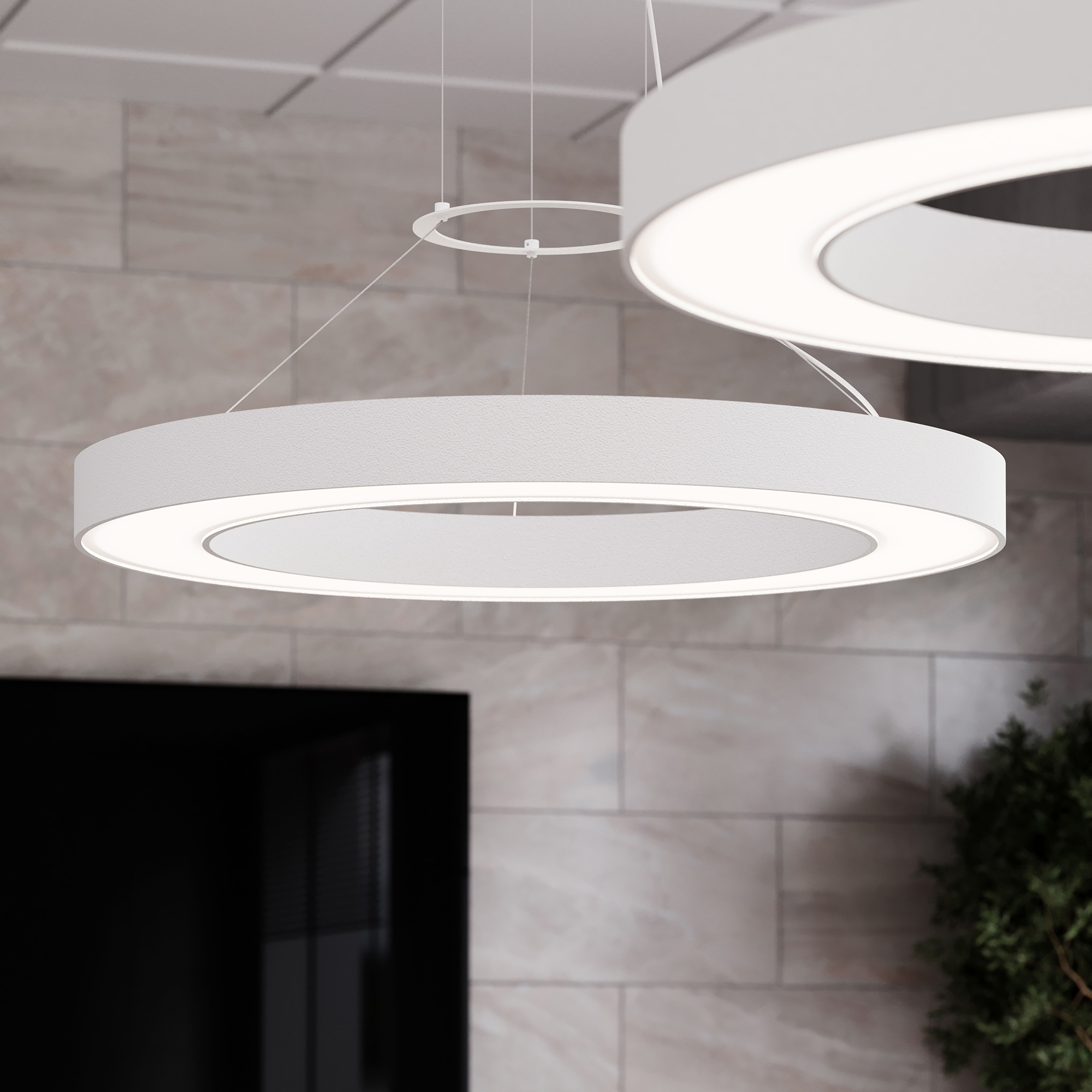 Suspended, the architectural presence of Pi punctuates the less is more idiom of Mies. Pi Pendants are now available in solid round and square shapes, as well as round ring and square ring pendants. Pi Pendants are available in multiples sizes, finishes, and color temperatures.