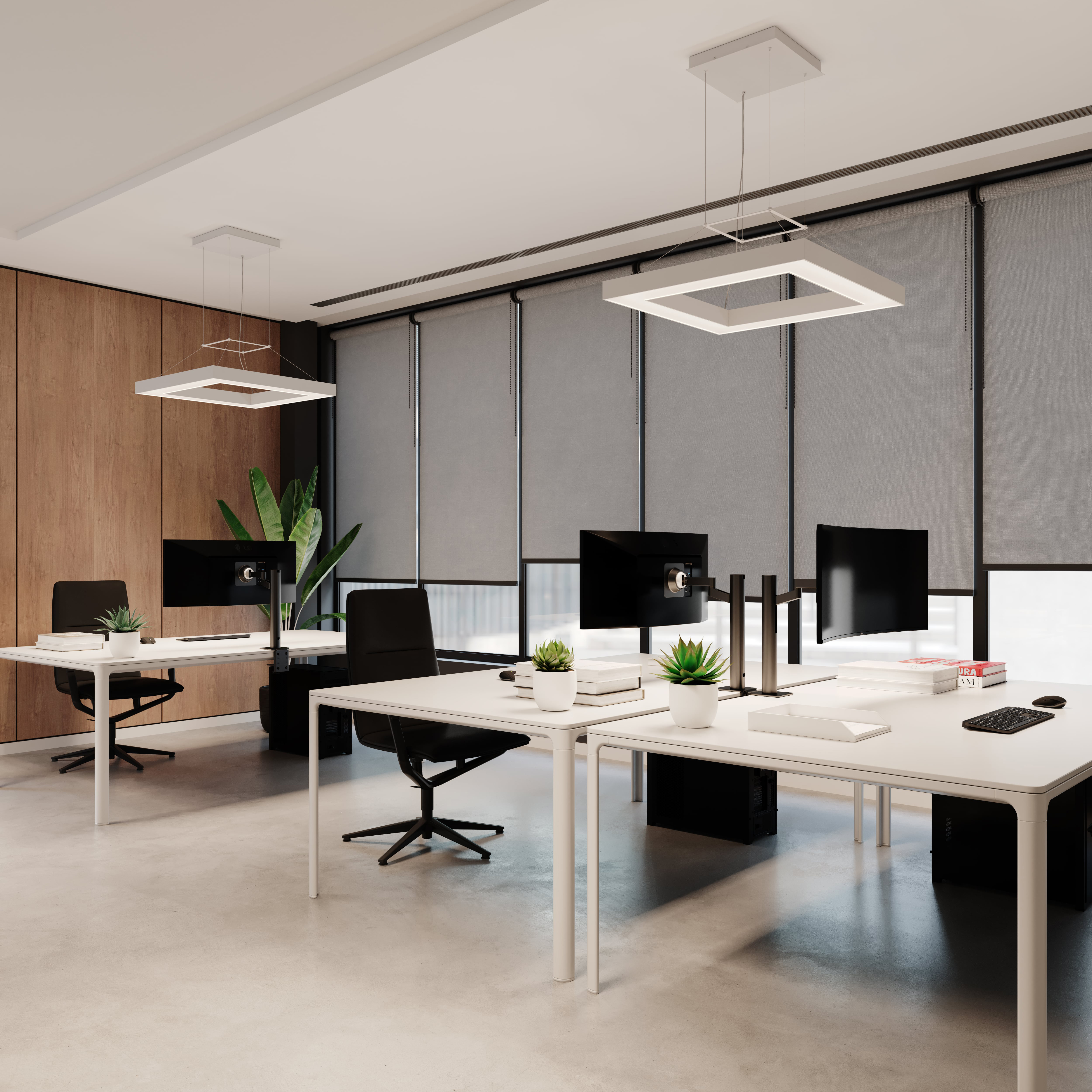 Suspended, the architectural presence of Pi punctuates the less is more idiom of Mies. Pi Pendants are now available in solid round and square shapes, as well as round ring and square ring pendants. Pi Pendants are available in multiples sizes, finishes, and color temperatures.