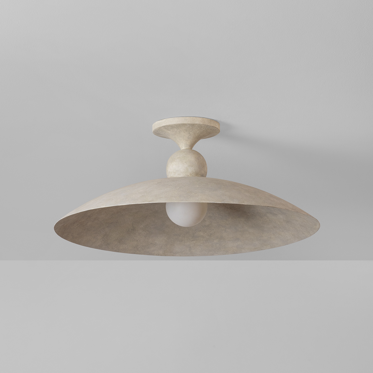 There’s a poetic beauty in the pure simplicity of this chalice-shaped flush mount. The limewash plaster finish gives Teelin a rustic, antique texture, while the soft curves are pleasing to the eye. The cleverly concealed socket ensures that only the G25 bulb is exposed, casting a warm and inviting glow within its reflector shade.