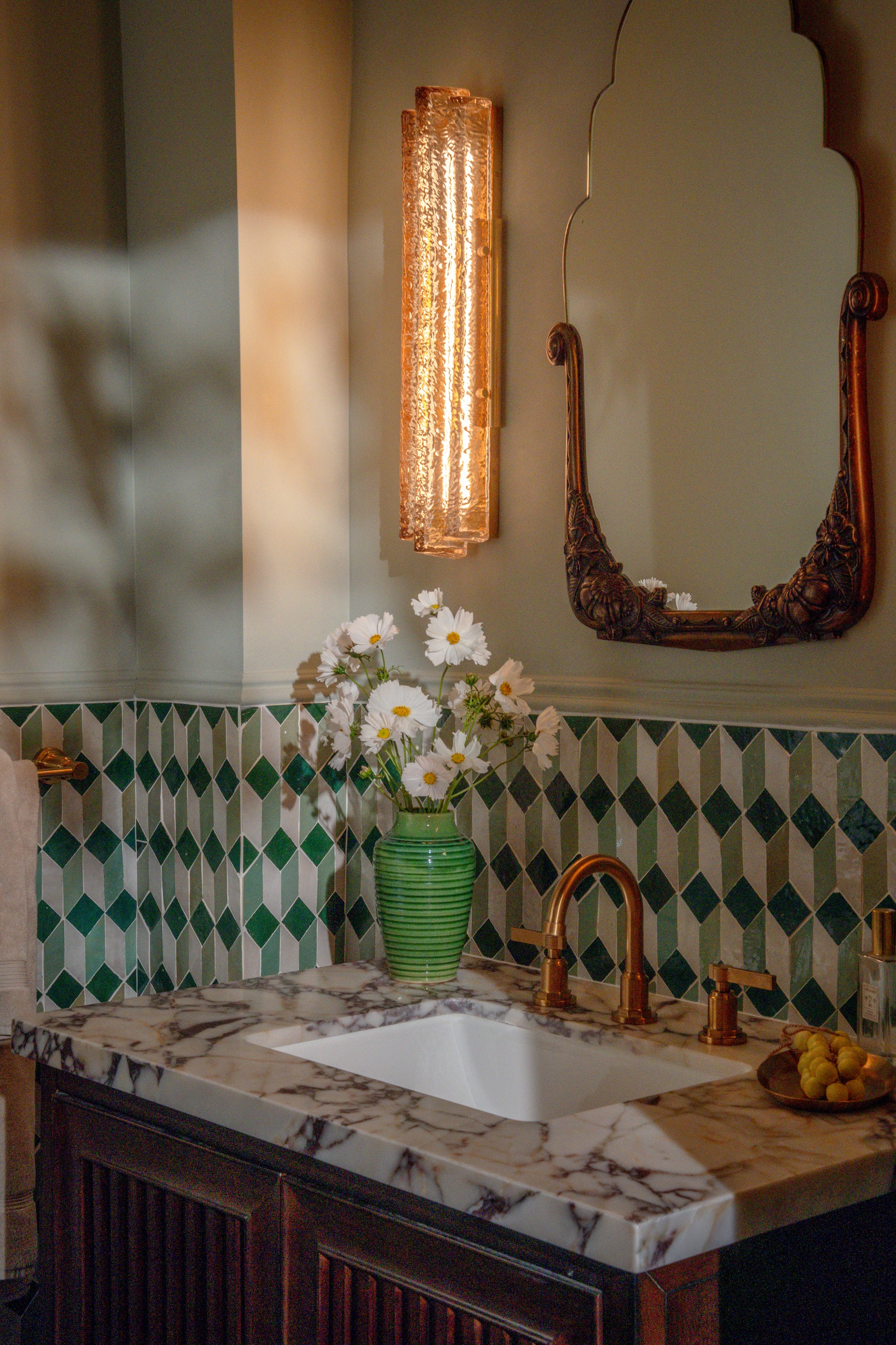 Named after a semi-precious stone, this sconce mesmerizes with its cluster of icy glass forms. Reflecting off the Vintage Brass metalwork, the handblown, dark champagne piastre glass exhibits both a warm and cool vibrancy. Whether illuminated or not, Carnelian makes a dazzling statement in bathrooms, bedrooms, or any space in need of a distinctive light.