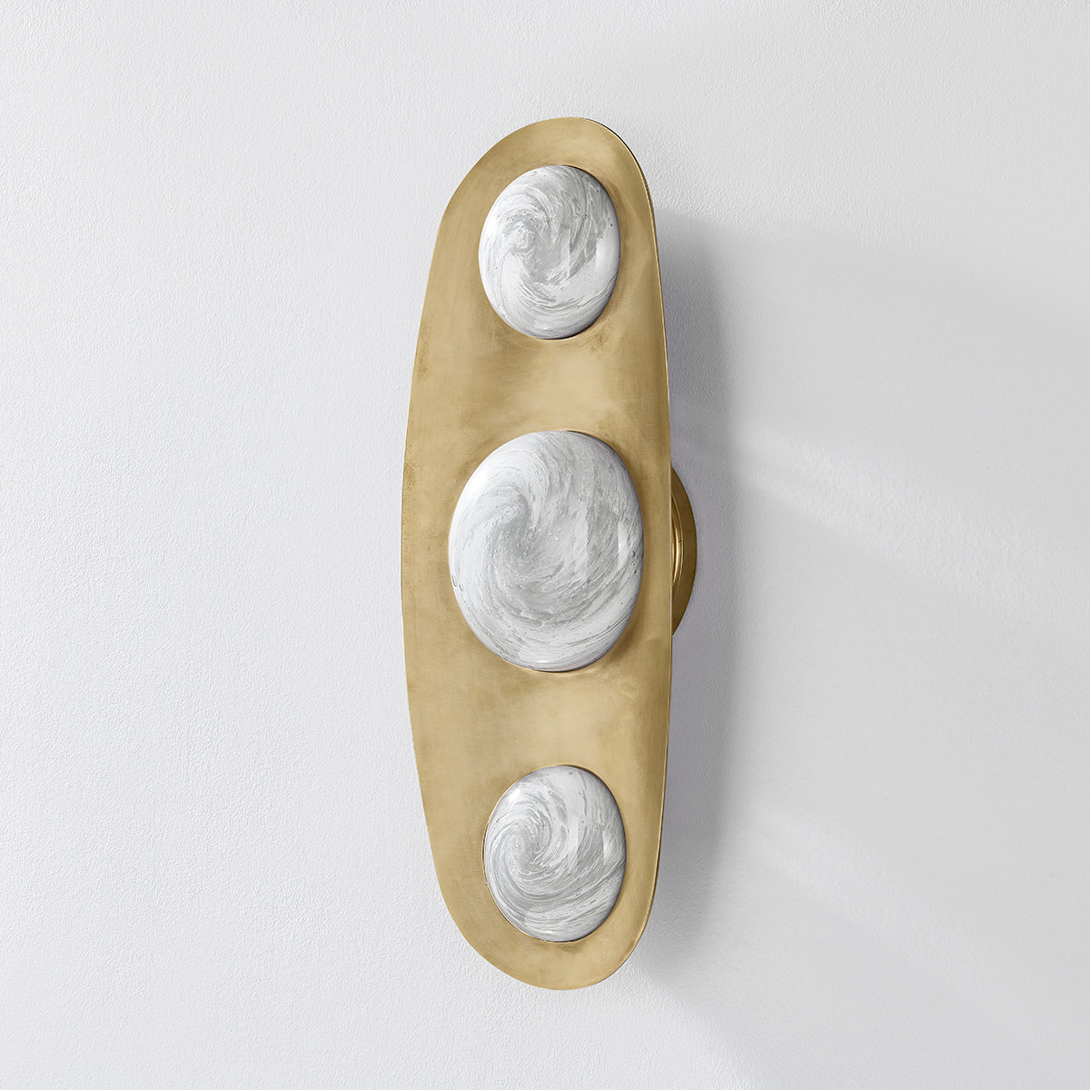Originally inspired by ‘superflush’ jewelry settings, where a stone is set into densely cast metalwork, Bezel is bold and glamorous with a sleek, decorative design. The Luna glass shades, etched on the inside, allow the LED light to radiate through, creating an enchanting glow. A Vintage Brass finish adds an extra layer of elegance to this captivating fixture. Bezel is available as a 3 or 5-light sconce. Part of our Noz Nozawa collection.