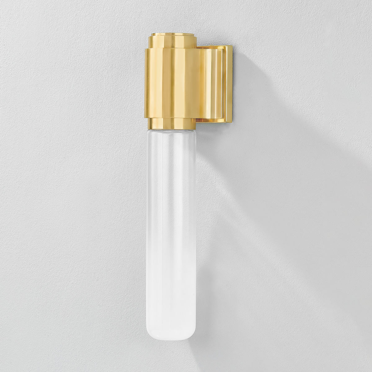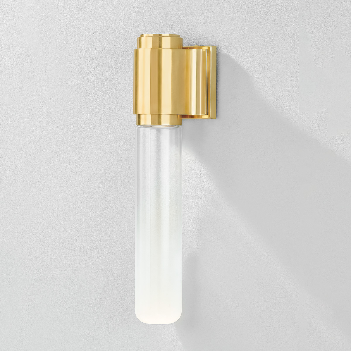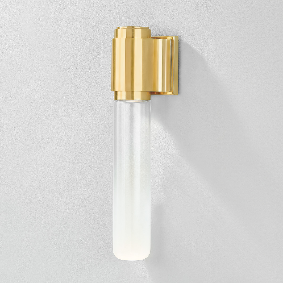 A contemporary twist on a classic bath sconce, Colrain casts a gentle glow upwards and downwards through its delicate Sfumato glass shades. Whether in a 1 or 2-light configuration, this sconce’s simple silhouette has remarkable functionality. Characterized by opaque white ends, the glass shades softly diffuse light while eliminating glare. The frame of Colrain is available in an Aged Brass or Polished Nickel finish.