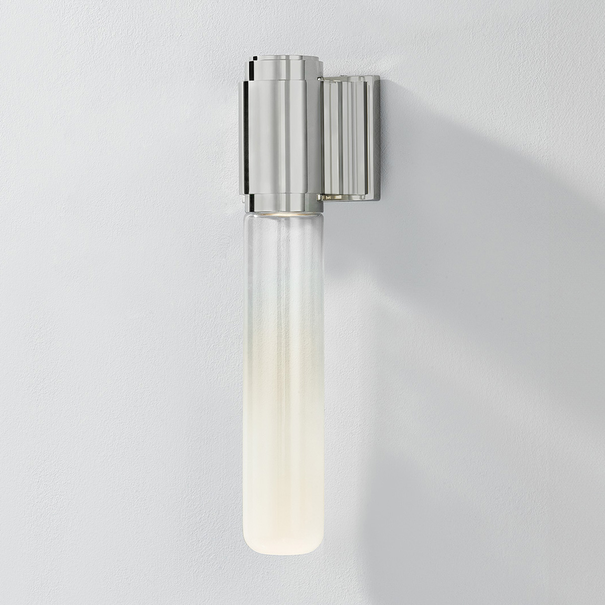 A contemporary twist on a classic bath sconce, Colrain casts a gentle glow upwards and downwards through its delicate Sfumato glass shades. Whether in a 1 or 2-light configuration, this sconce’s simple silhouette has remarkable functionality. Characterized by opaque white ends, the glass shades softly diffuse light while eliminating glare. The frame of Colrain is available in an Aged Brass or Polished Nickel finish.
