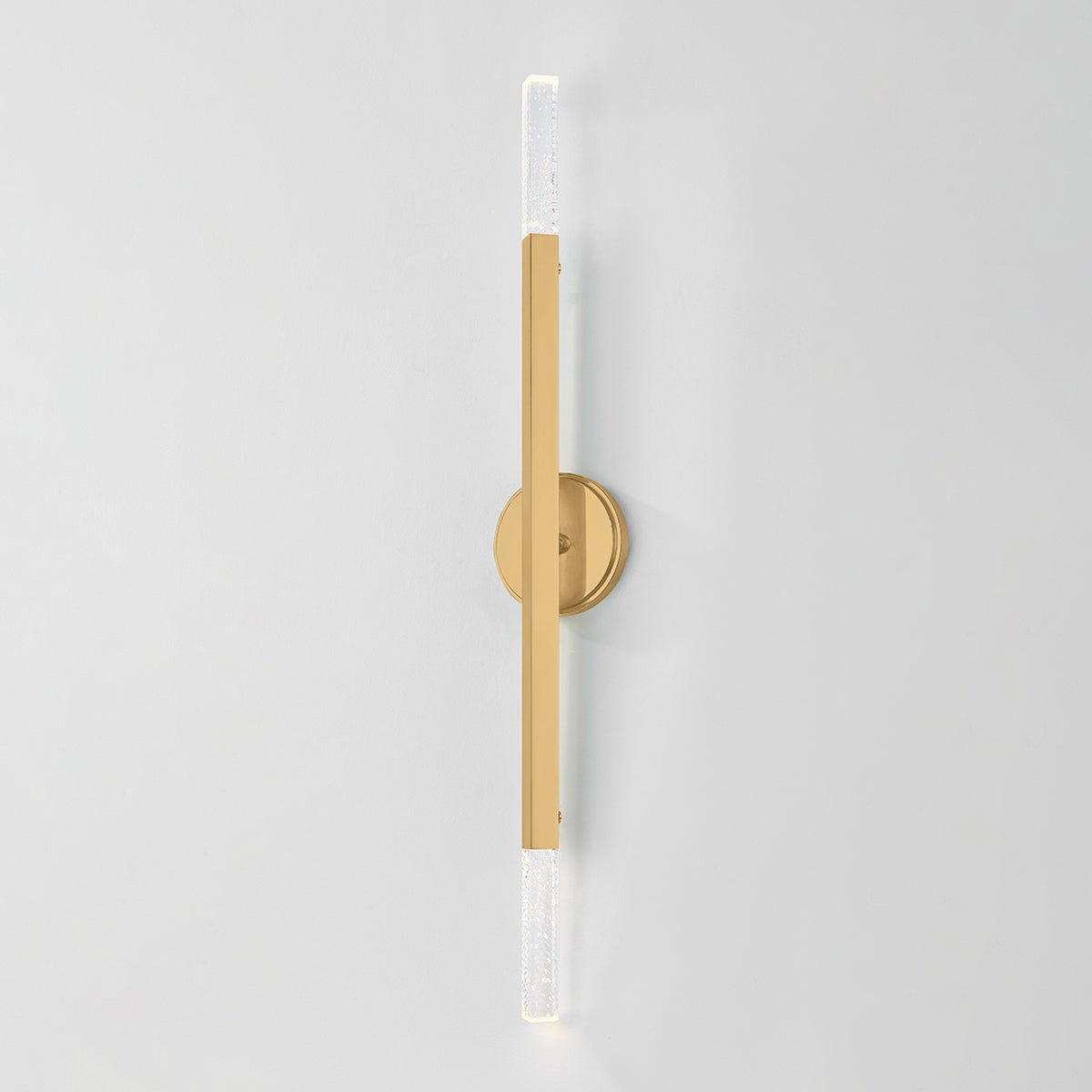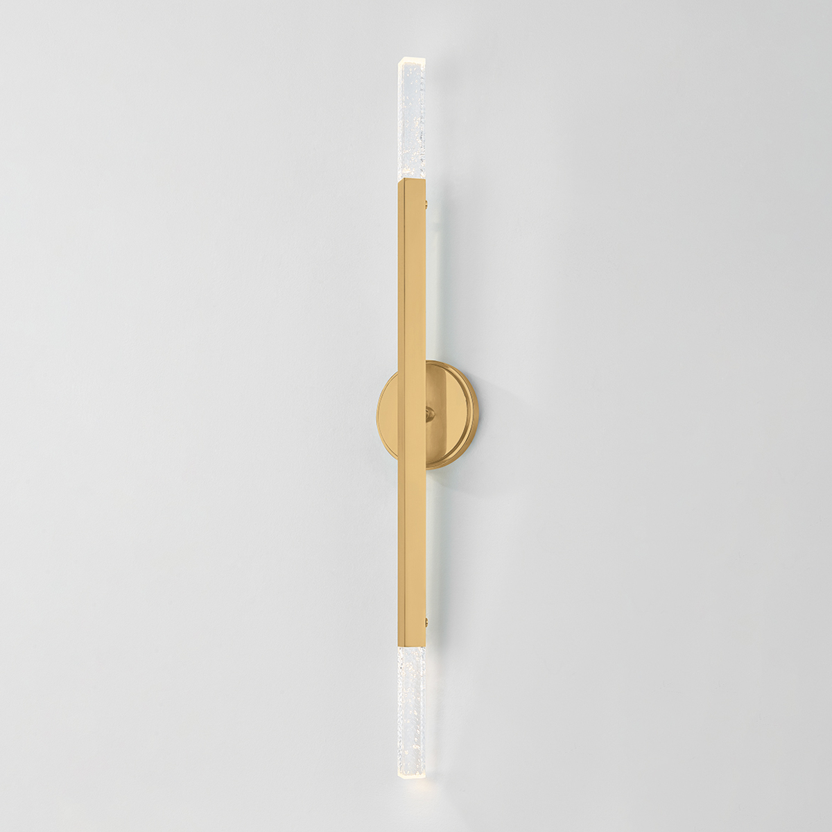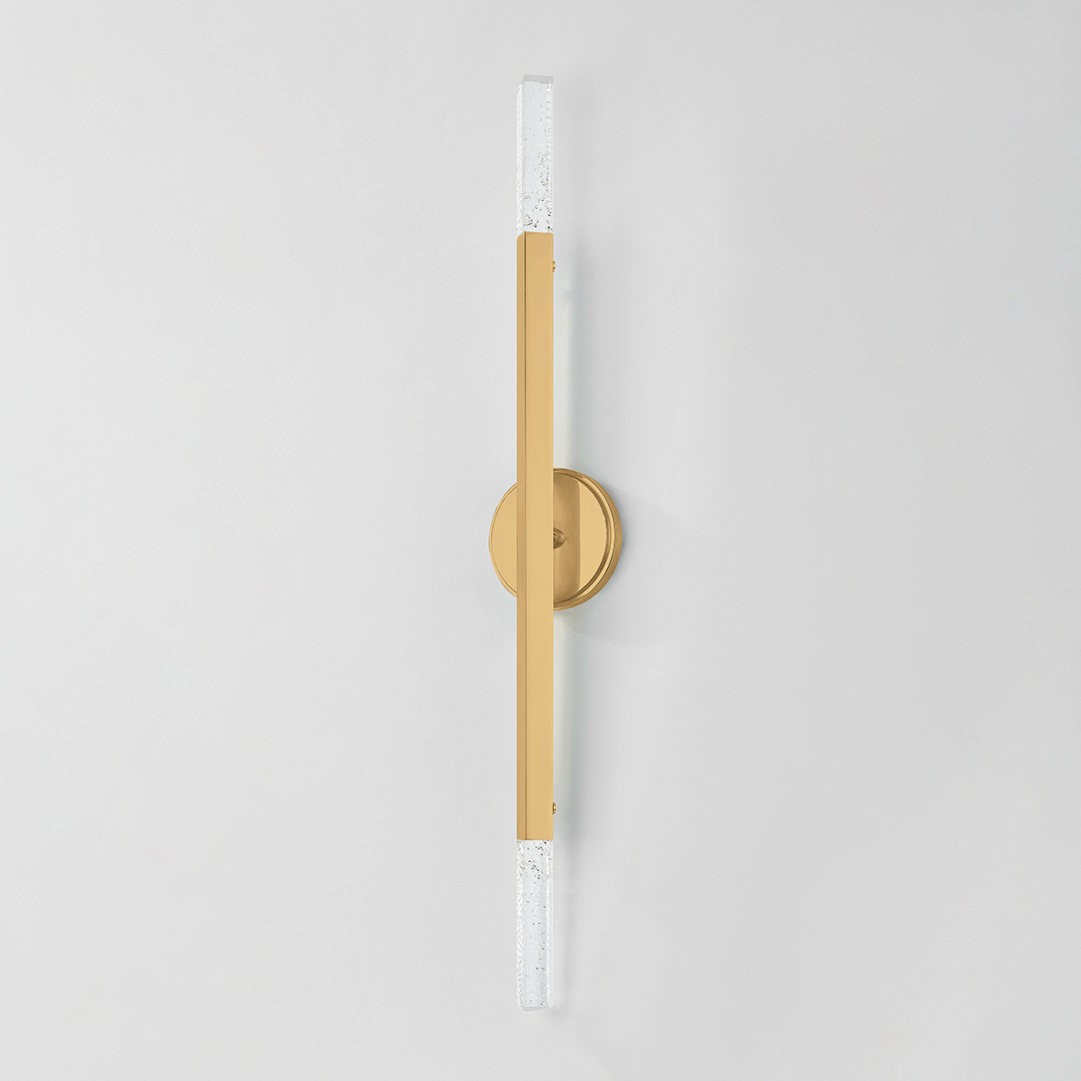 Bold and architectural, the Strasbourg family gives Art Deco style a modern twist. Available in two sizes, the chandelier features a fanned silhouette that forms a dynamic, artistic statement overhead. Finished in Vintage Brass, each arm is capped on both ends by a cast-seeded glass optic, creating an even spread of light that extends in all directions. The sconce shares the same edgy design language in a more compact, restrained form.