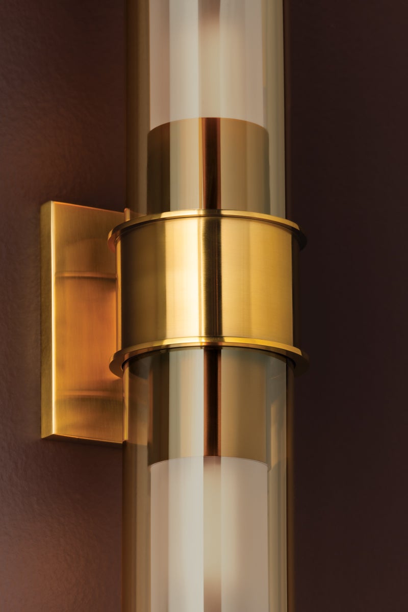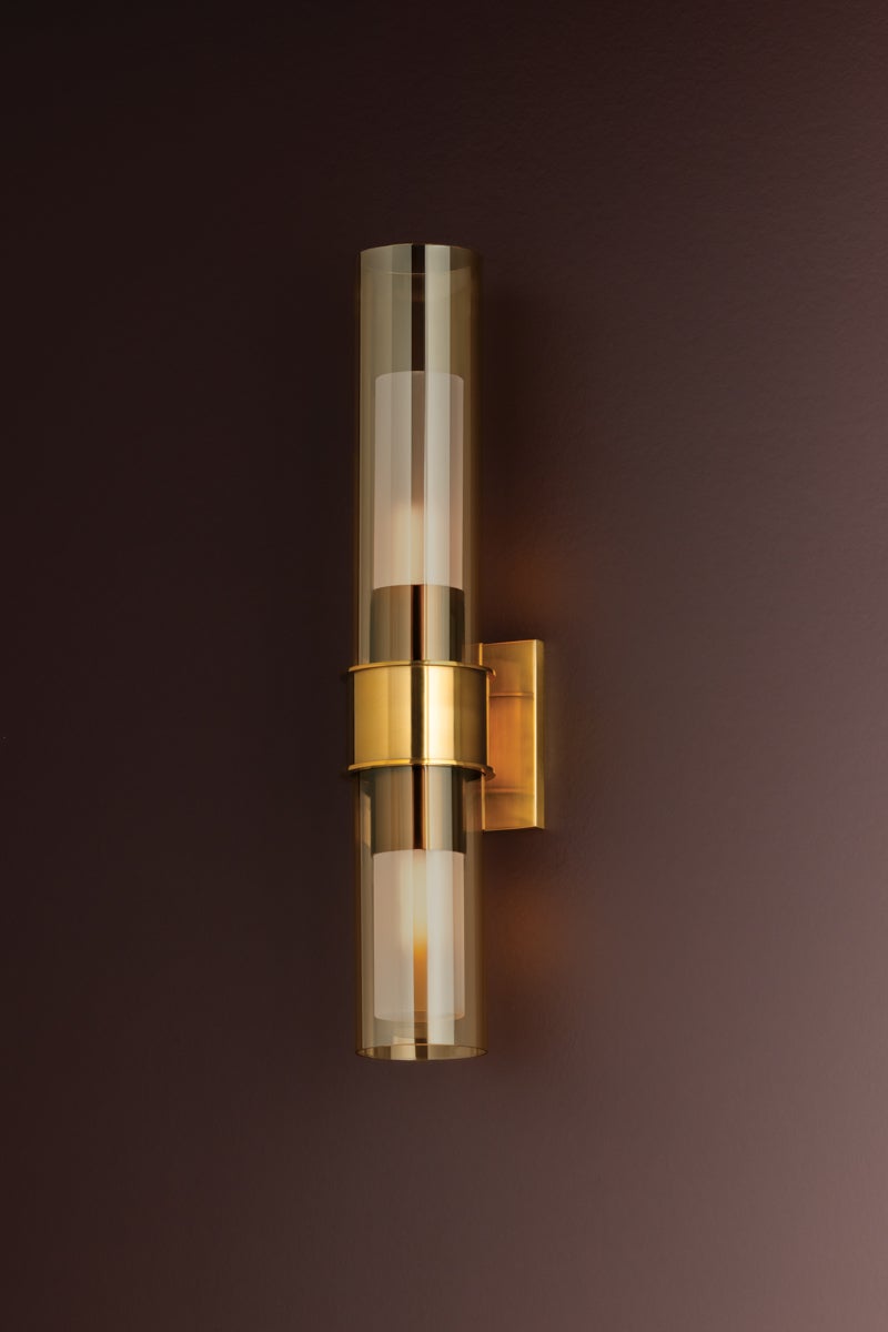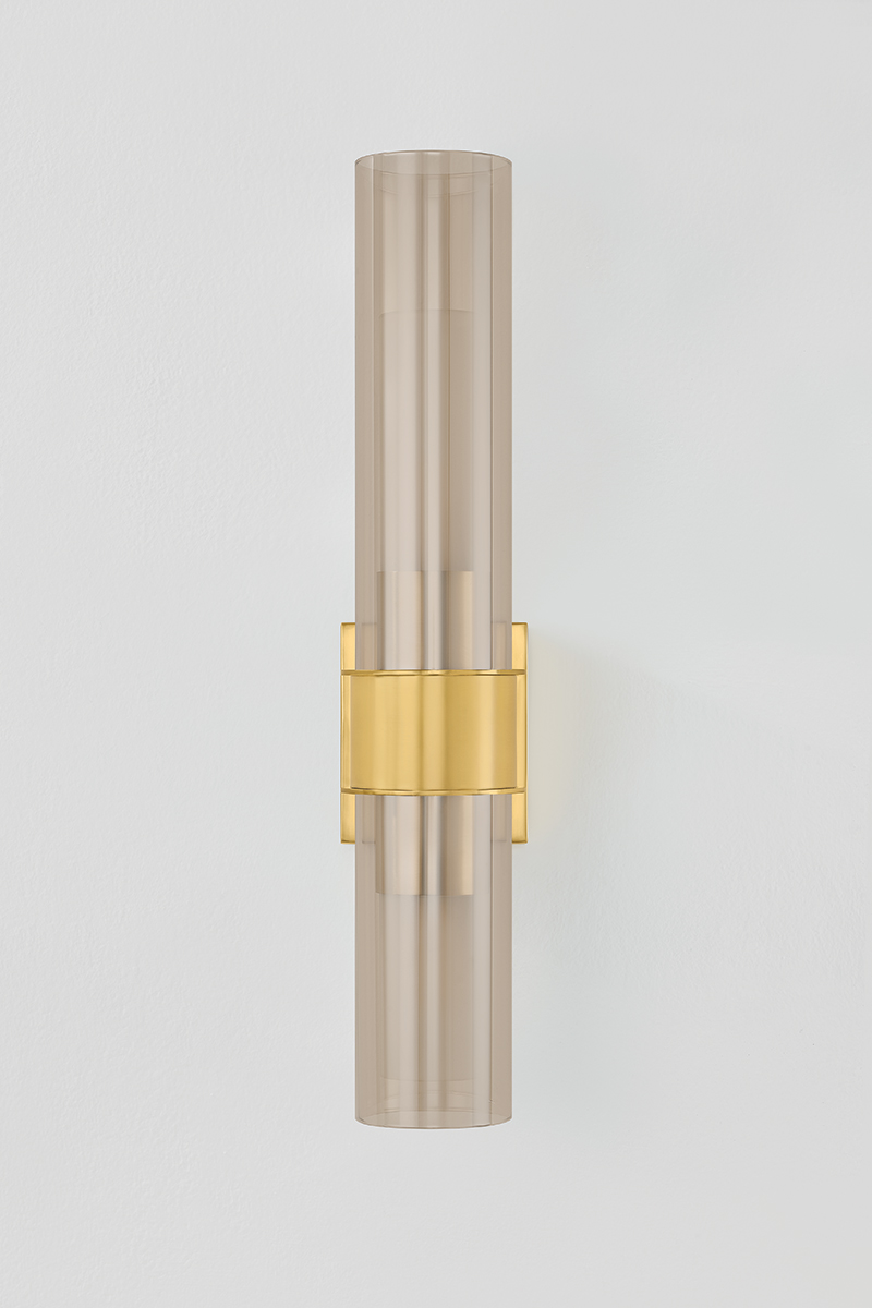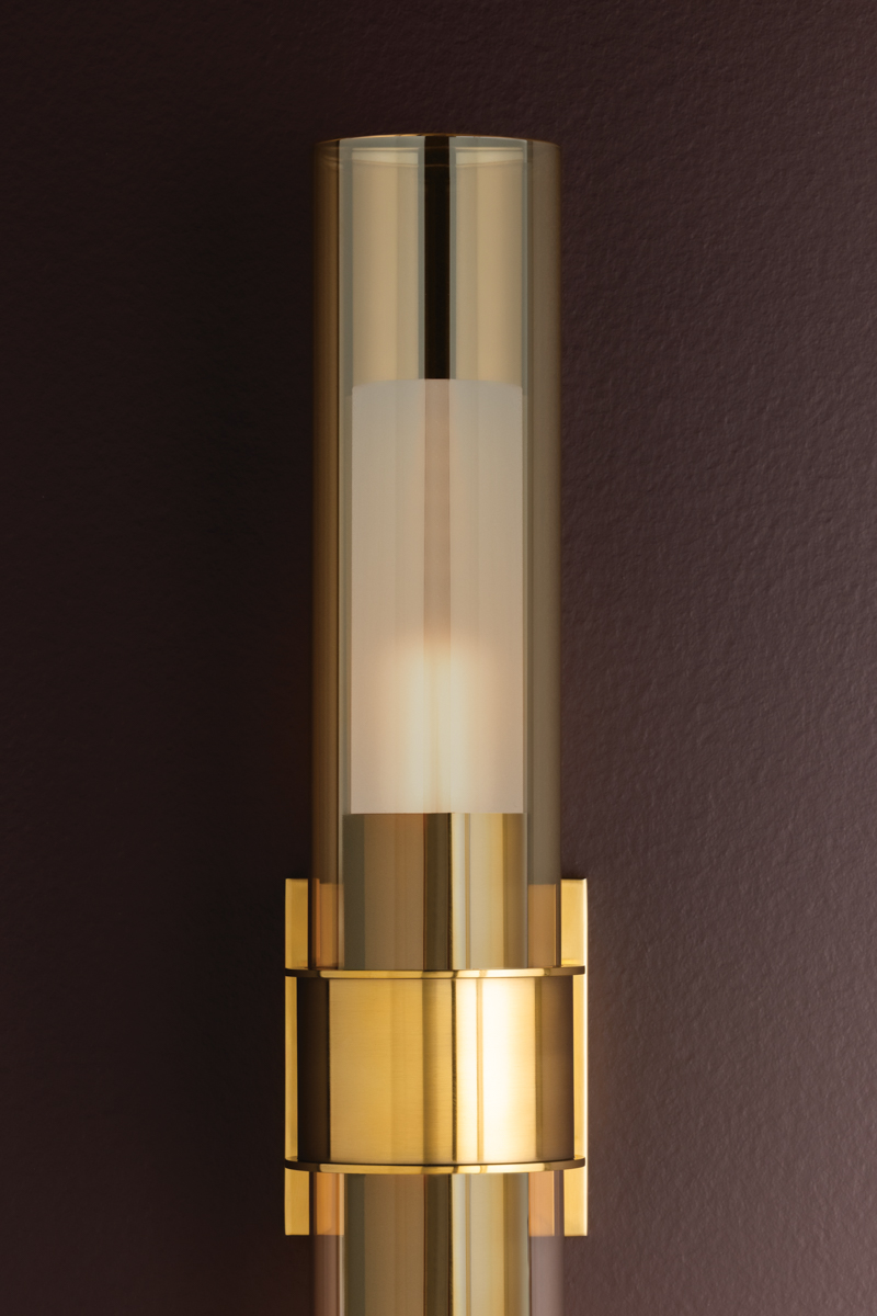 Fashion meets functionality in this perfectly modern bath sconce. Granada features an outer layer of one or two tubes of light bronze glass with an etched matte glass inner shade. This thoughtful layering enhances the sconce's depth of color and diffusion of light. Finished in Vintage Polished Brass, Granada is a stylish addition to a bath or vanity space.