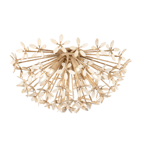 A delicate botanical motif gives this contemporary Sputnik design an organic twist, while intertwining couture artistry. Corfu’s soft, wispy ‘petals’ sprout from a central point, creating a burst of light and life. Natural materials like bleached abaca and coco shells impart a neutral tonality and airy quality. As a semi-flush mount in two sizes or a chandelier in three sizes, Corfu is a whimsical delight for the senses.