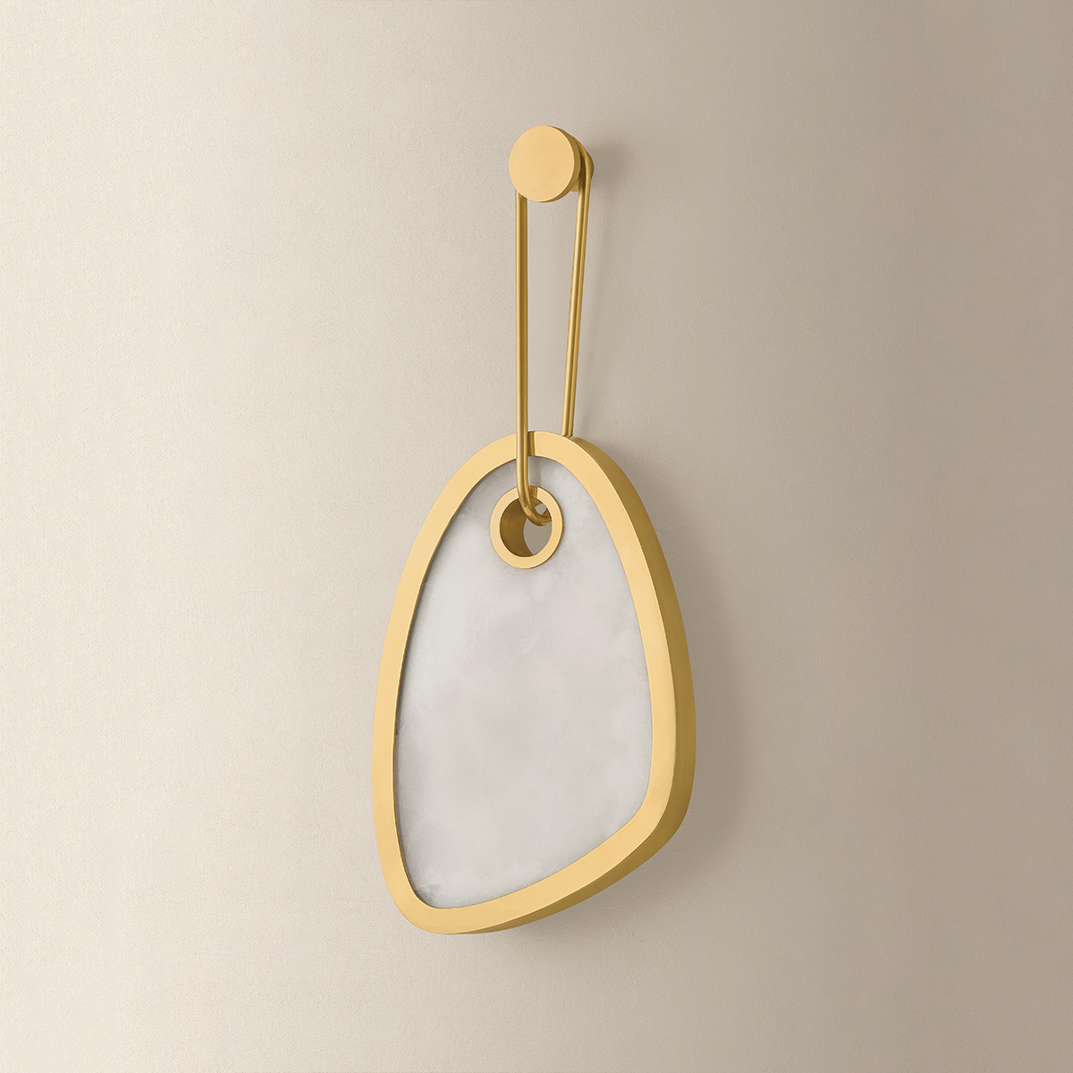 Vela is a sculptural ode to natural stone and refined restraint. A luminous slice of onyx floats against the wall, suspended by a delicate Vintage Brass loop that recalls the elegance of a dangling earring. Casting a soft, ambient glow that evokes the warmth of dusk, Vela’s quiet drama and elemental presence are both grounded and ethereal, adding a touch of material poetry to moody or minimal interiors.