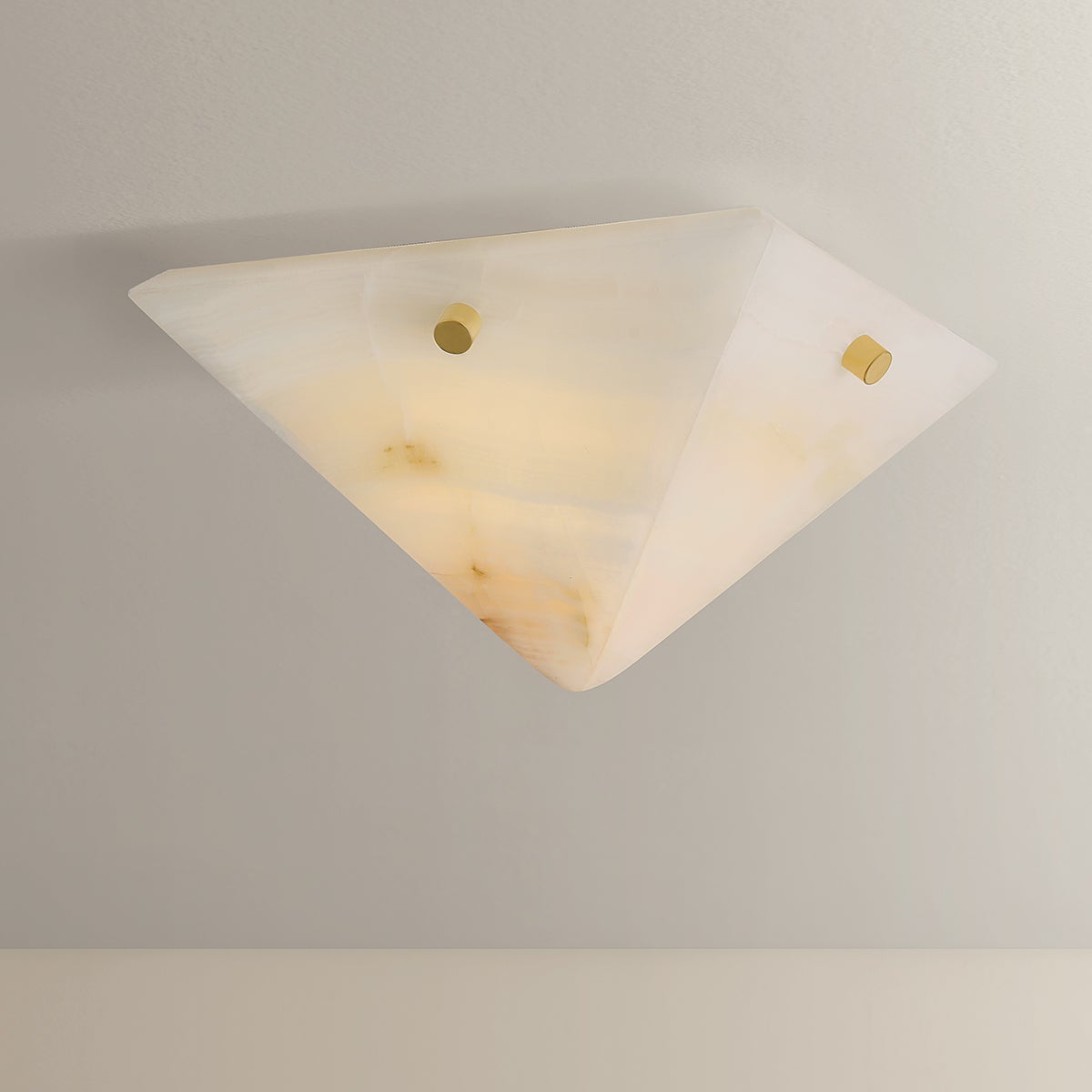 Geo is defined by its quiet strength and sculptural clarity. Glowing panels of honey onyx are book matched to reveal mirrored veining—an artisanal detail more often seen in luxury surfaces than lighting. The symmetry of the stone takes center stage, framed by clean, minimal metalwork in Vintage Brass that amplifies its natural elegance. Available as a 1-light wall sconce in two shapes and sizes, as well as a 1-light flush mount, Geo offers a soft, grounded glow that feels both bold and restrained. Its graphic silhouette and elemental beauty lend structure and visual rhythm to interiors.