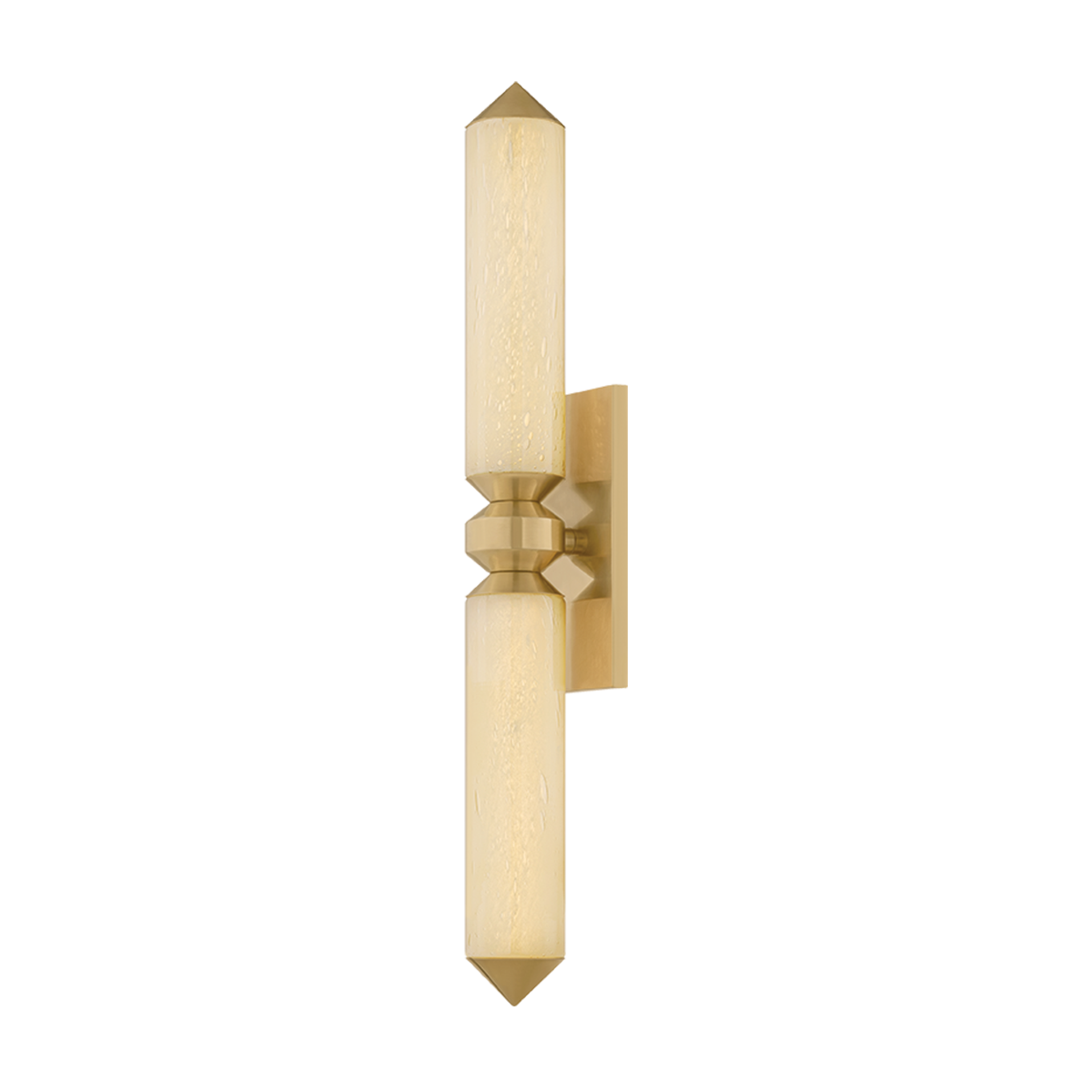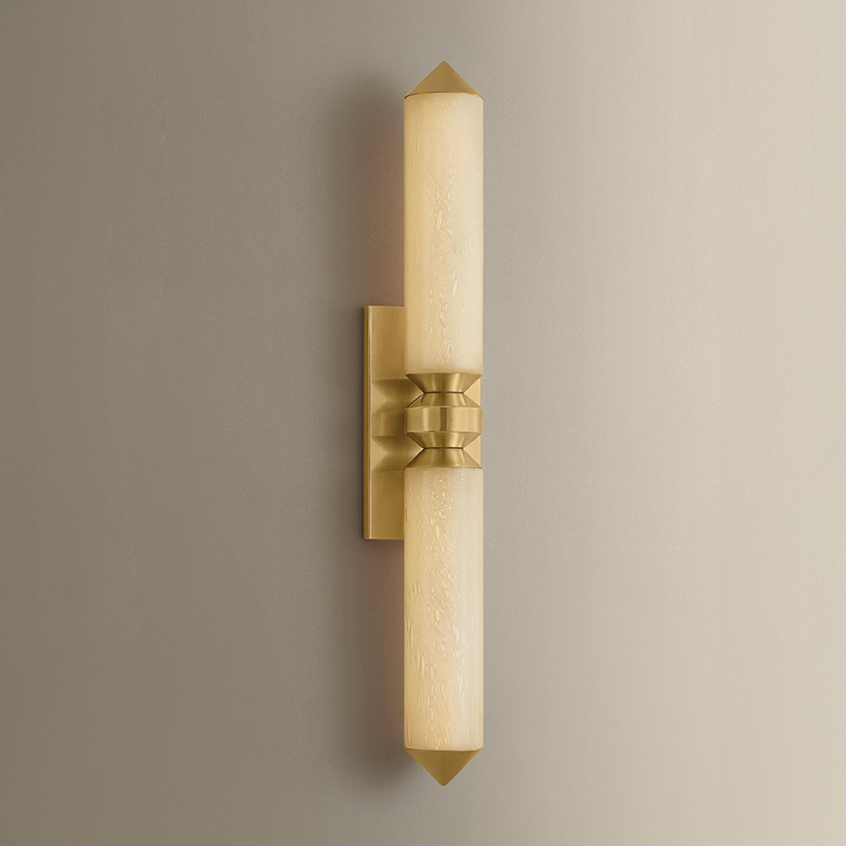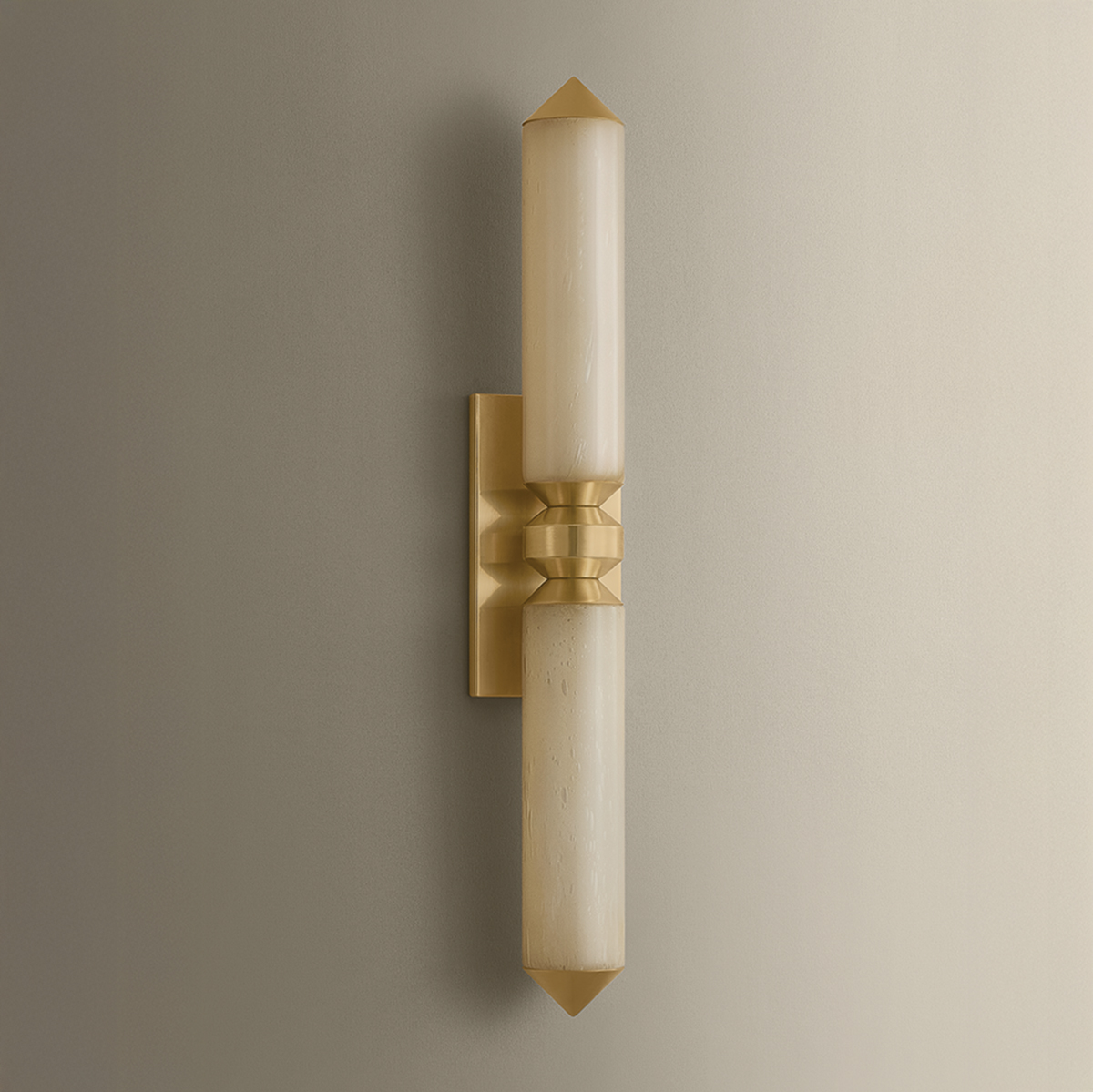 The Hydra family draws inspiration from the architectural precision of scaffolding, translating structural geometry into a bold lighting moment. Angular arms intersect, while conical cloud seedy champagne glass shades diffuse light in a multidirectional output. Finished in Vintage Brass, Hydra is available as a 2-light wall sconce, a 10-light linear, and a 12-light chandelier.