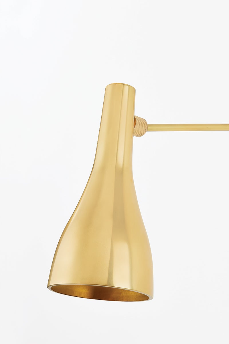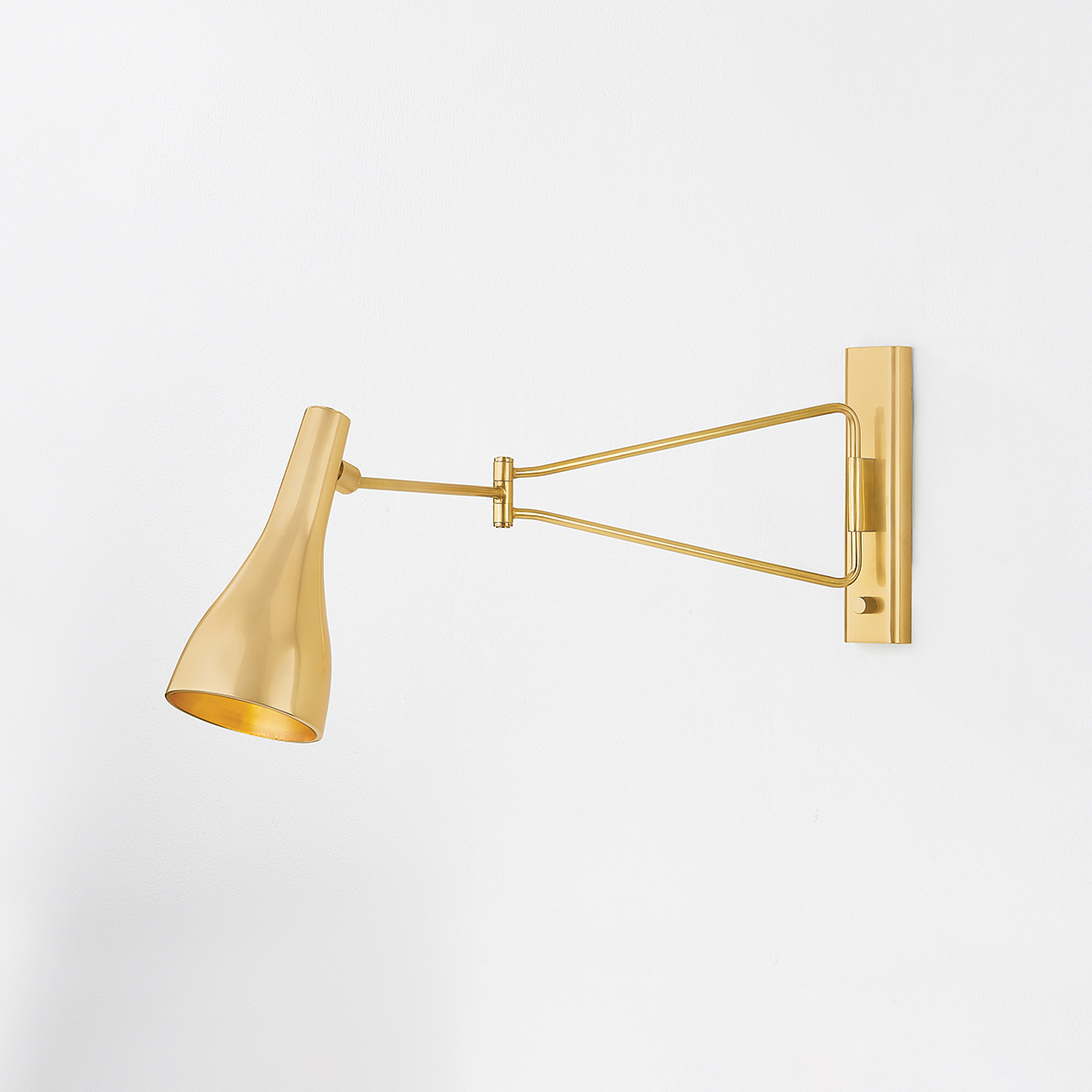 Inspired by mid-century design aesthetics, Northford features a playful triangular arm and bell-shaped shade. The narrow backplate includes a dimmer switch that allows for precise adjustments in brightness. This fixture is perfect as a reading light above a sofa or lounge chair, or anywhere adjustable task lighting is required.