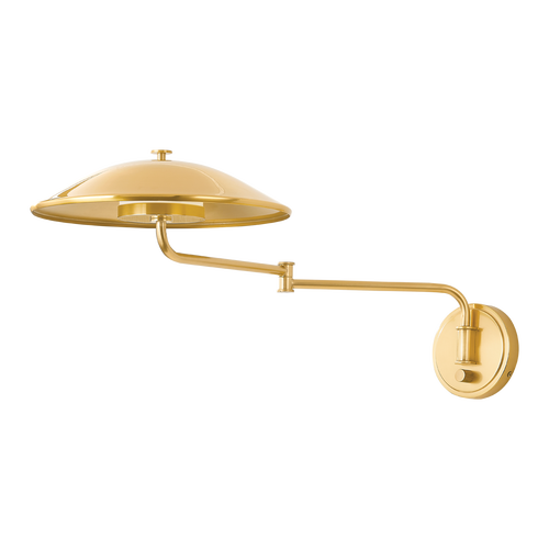 A clever swing-arm sconce design that aims for a unity of hard and soft design language. The sleek Aged Brass metalwork of Douglaston finds a graceful counterpoint in the sweep of the arm and the draped curve of the Soft Sand shade. Engineered for optimal functionality, this sconce directs light downward for reading or work.