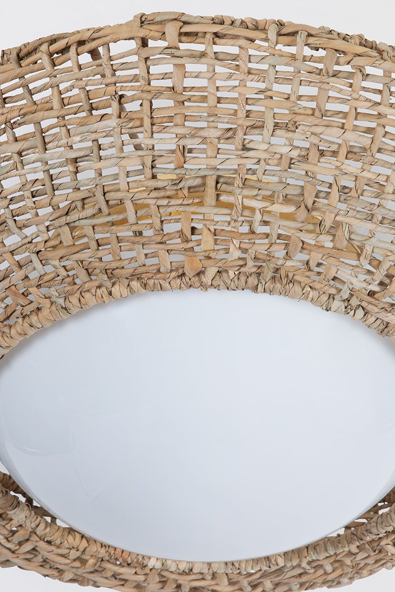 A basket-like shade made of hand-woven Abaca rope surrounds an opal glossy bulb in this stylish, modern flush mount. Designed to elevate traditional overhead lighting with rustic, coastal flair, Killington frames the light without reducing its efficiency. Enhancing an airy design style, it is unique and understated.