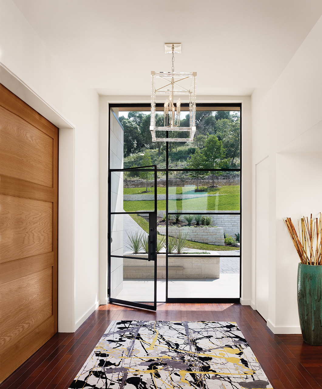 The fixture’s unexpected impact comes from its futuristic materials and shapes and its icy crystal cubes, stacked along the metal frame. Subtly staggered clusters of candelabra lamps cast a sparkling glow along this prismatic frame, playing a brilliant light pattern across any room. Polished Nickel preserves the fixture’s winter chill while Aged Brass accents add warming contrast.