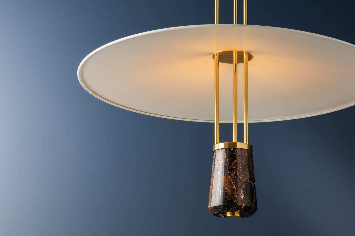 Inspired by the graceful wingspan of a crane, Barnegat has a serene silhouette with mid-century design appeal. The wide, slender shade is balanced by the visual weight of the dark St. Laurent marble at the bottom of the fixture. To complement the other distinctive materials, the metalwork is finished in Aged Brass. Make a poetic statement in living or dining spaces with this timeless pendant light.