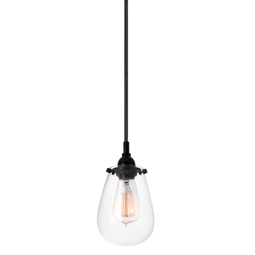 Suspended from its black metal cord and held by its industrial socket, Chelsea's historic carbon filament lamp is encapsulated in a voluptuous glass form that echoes its classic shape. The Chelsea Bath Sconce features a metal cord ideal for a bathroom setting, unlike the Chelsea Sconce, Pendant, and Chandelier, which feature a braided cord.