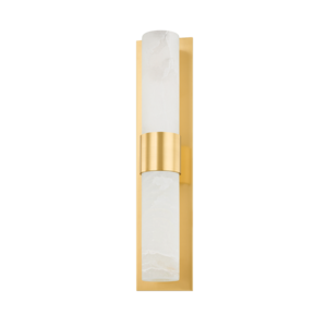 A modernization of a traditional silhouette, Stowe features alabaster tubes wrapped at the center by a band of Aged Brass. The sconce mounts the cylindrical shade on a straightforward metal backplate while the 24-light chandelier arrays the shades in pairs around a center point at varying depths and heights adding dimension and a sculptural feel.