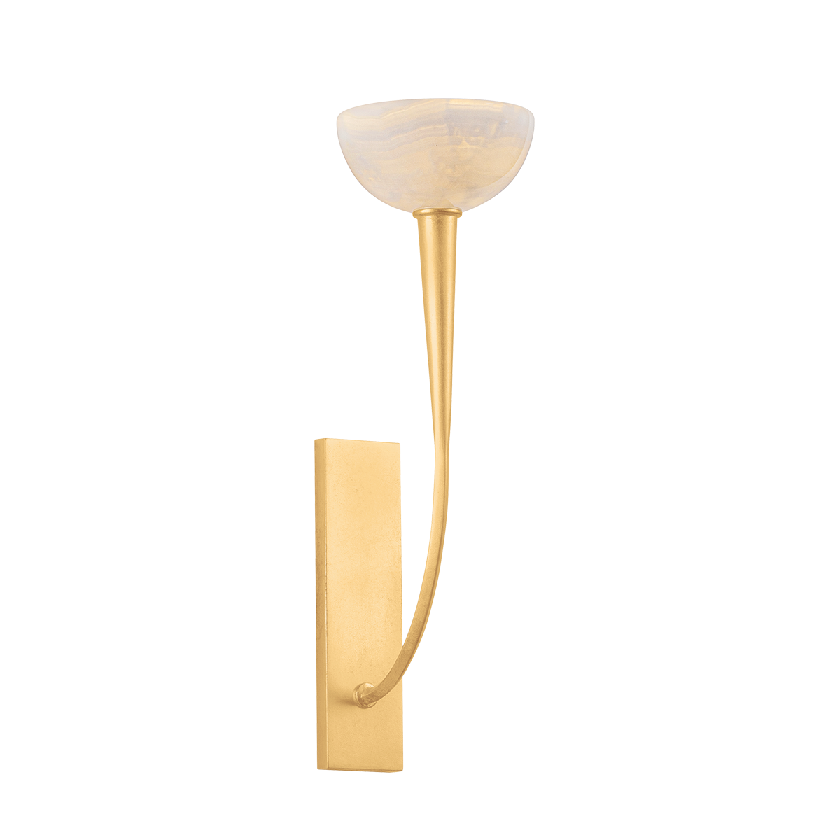Maywood is an ethereal conversation piece replete with otherworldly beauty and futuristic metalwork. The arms taper as they stretch upwards, finished in Vintage Gold Leaf. At the end of each ‘stem’ is an onyx shade that glows with rich natural veining. Available as a 1-light sconce and a 4, 8, and 12-light chandelier, these biomorphic designs are made to stand out.