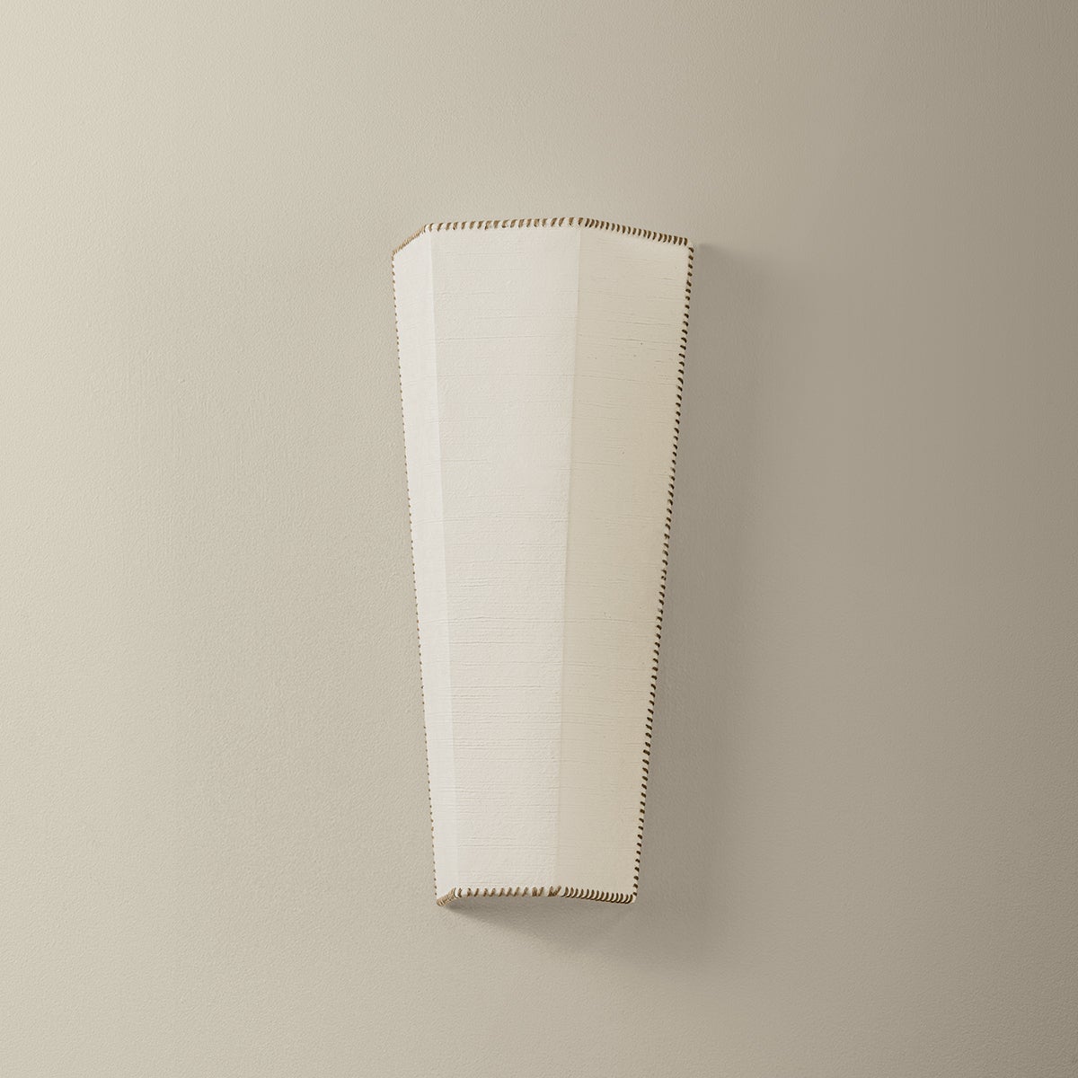 A natural extension of the Cy floor lamp, the Celmins family translates the warmth and texture of handmade materials into quiet, architectural forms. Crafted from handmade paper, the angular shades are trimmed in mushroom-hued whipstitching—a thoughtful detail that speaks to the artistry of their construction. Available as a 1- or 2-light wall sconce and a coordinating floor lamp, Celmins brings a soft sculptural quality to interiors.