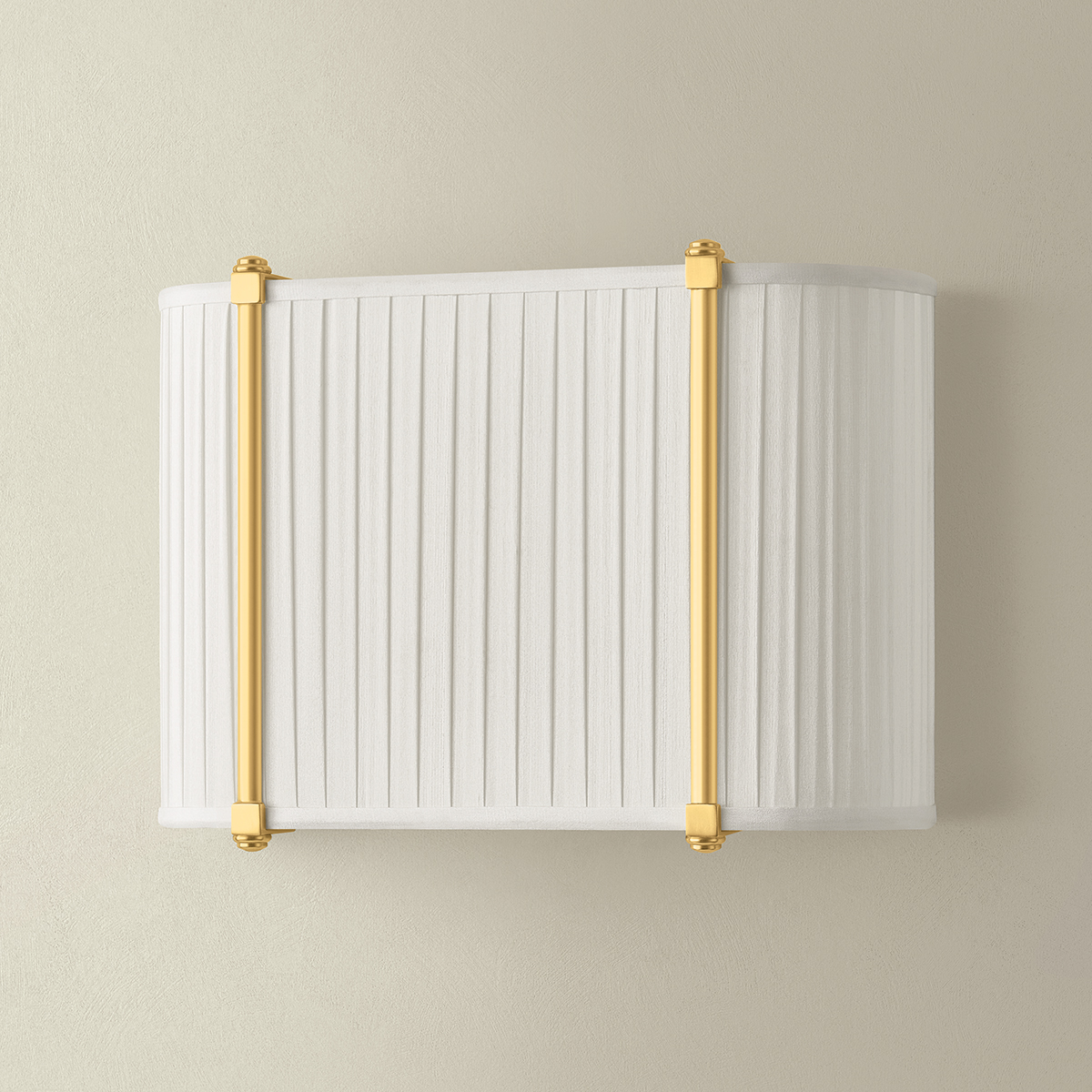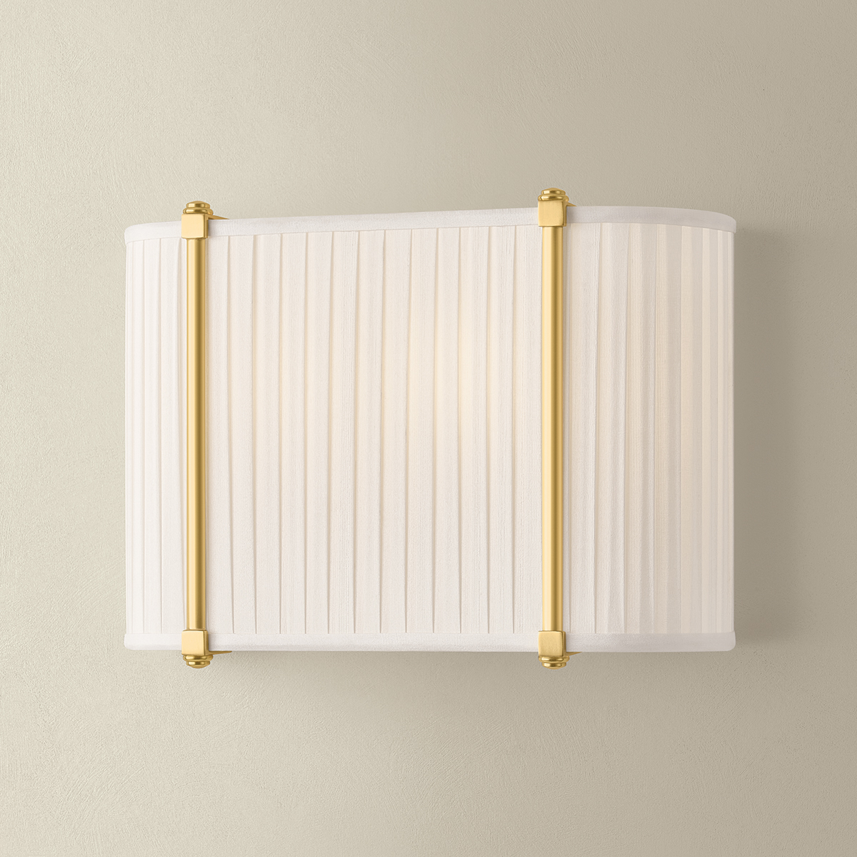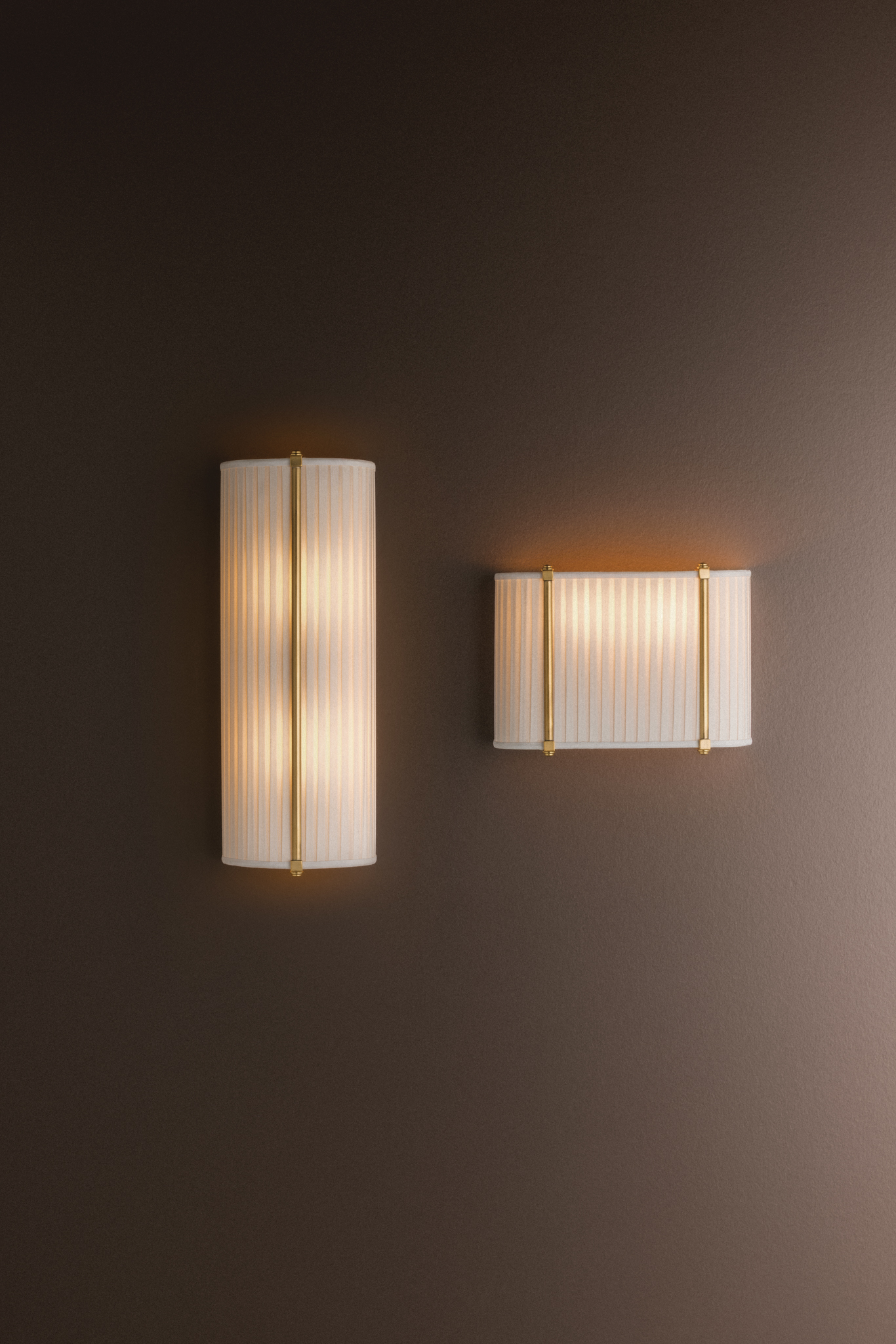 Cornell strikes a graceful balance between softness and structure. A hand-pleated silk shade is framed by slender vertical rods in an Aged Brass finish, creating a streamlined silhouette with vintage appeal. Offered in two sizes—a narrow 2-light and a wider 2-light version—Cornell’s quiet elegance and tailored proportions make it an ideal layering piece for transitional moments throughout the home.