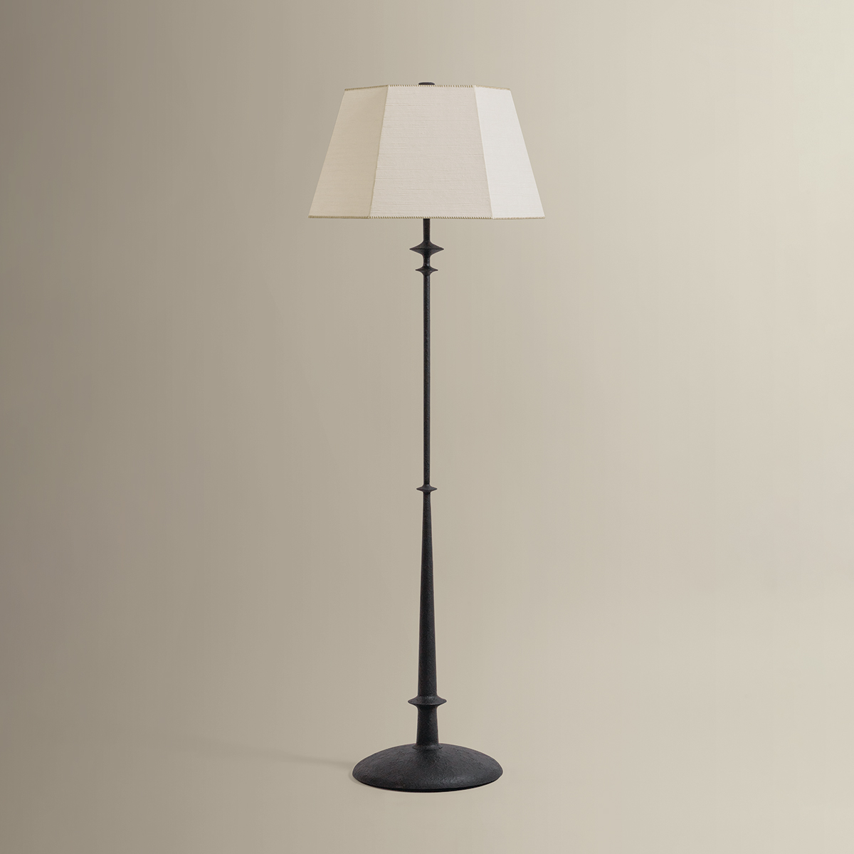 A natural extension of the Cy floor lamp, the Celmins family translates the warmth and texture of handmade materials into quiet, architectural forms. Crafted from handmade paper, the angular shades are trimmed in mushroom-hued whipstitching—a thoughtful detail that speaks to the artistry of their construction. Available as a 1- or 2-light wall sconce and a coordinating floor lamp, Celmins brings a soft sculptural quality to interiors.