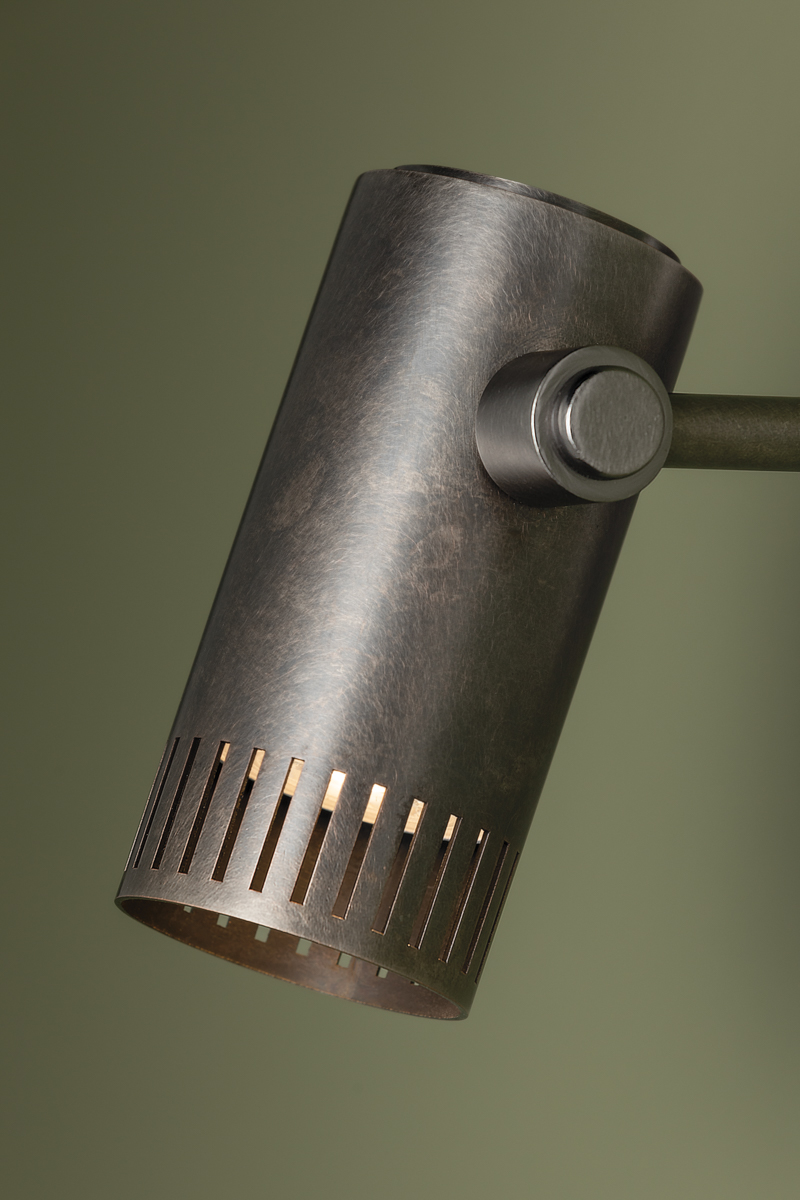 An elevated basic inspired by retro-futurism, Arrow harkens to the days of craftsmanship-led design. This function-forward sconce features an adjustable head to allow complete control over the direction of light. Available in either a Patina Brass or Vintage Pewter finish, the nostalgic appeal of this simple spotlight endures.