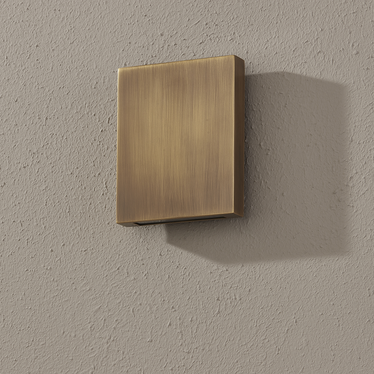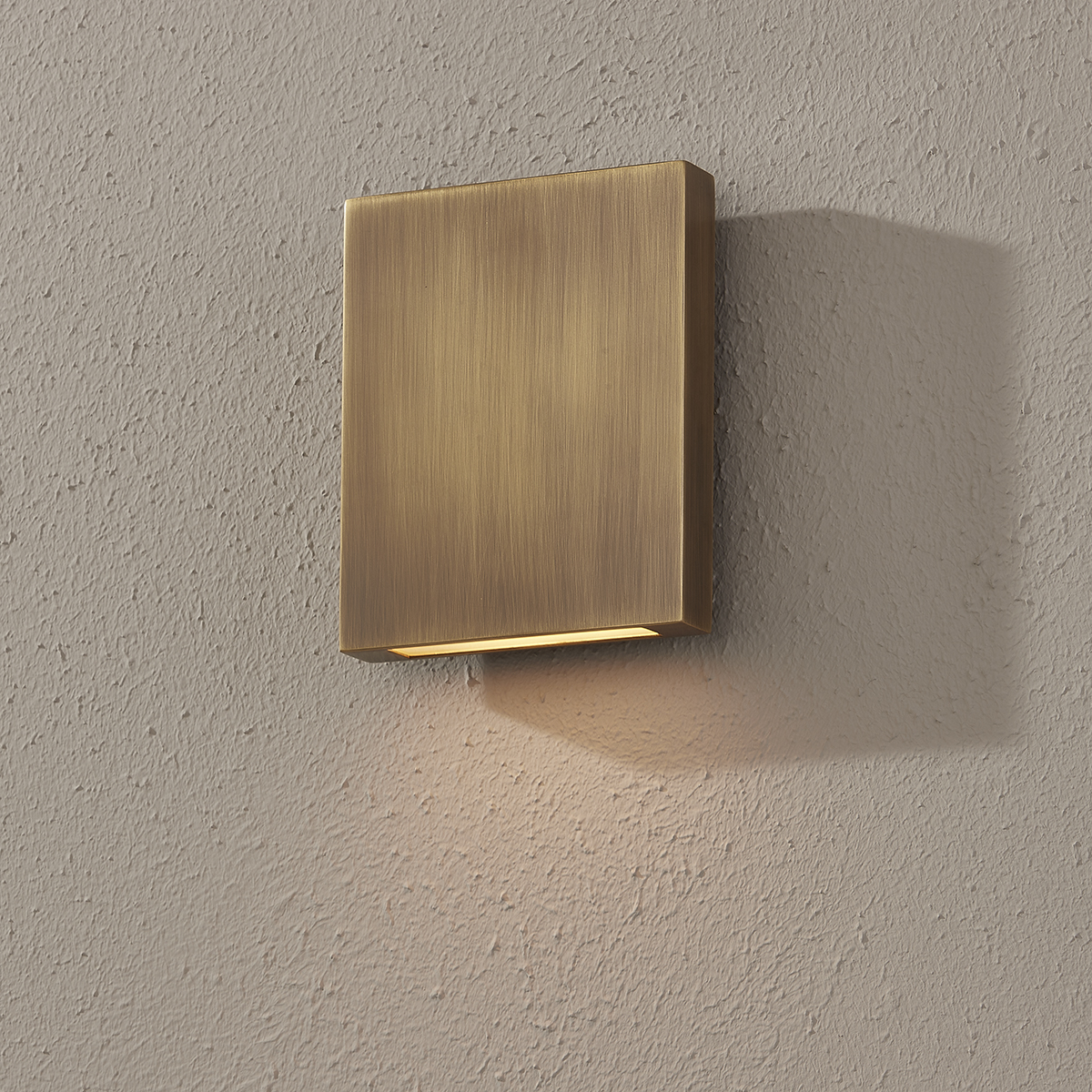 The beautiful Patina Brass finish elevates this straightforward, rectangular silhouette. Thayne's modern architectural design features an etched ""spread"" lens that evenly distributes the light from the LED bulb. The slim profile makes this outdoor sconce extremely usable in a variety of exteriors.