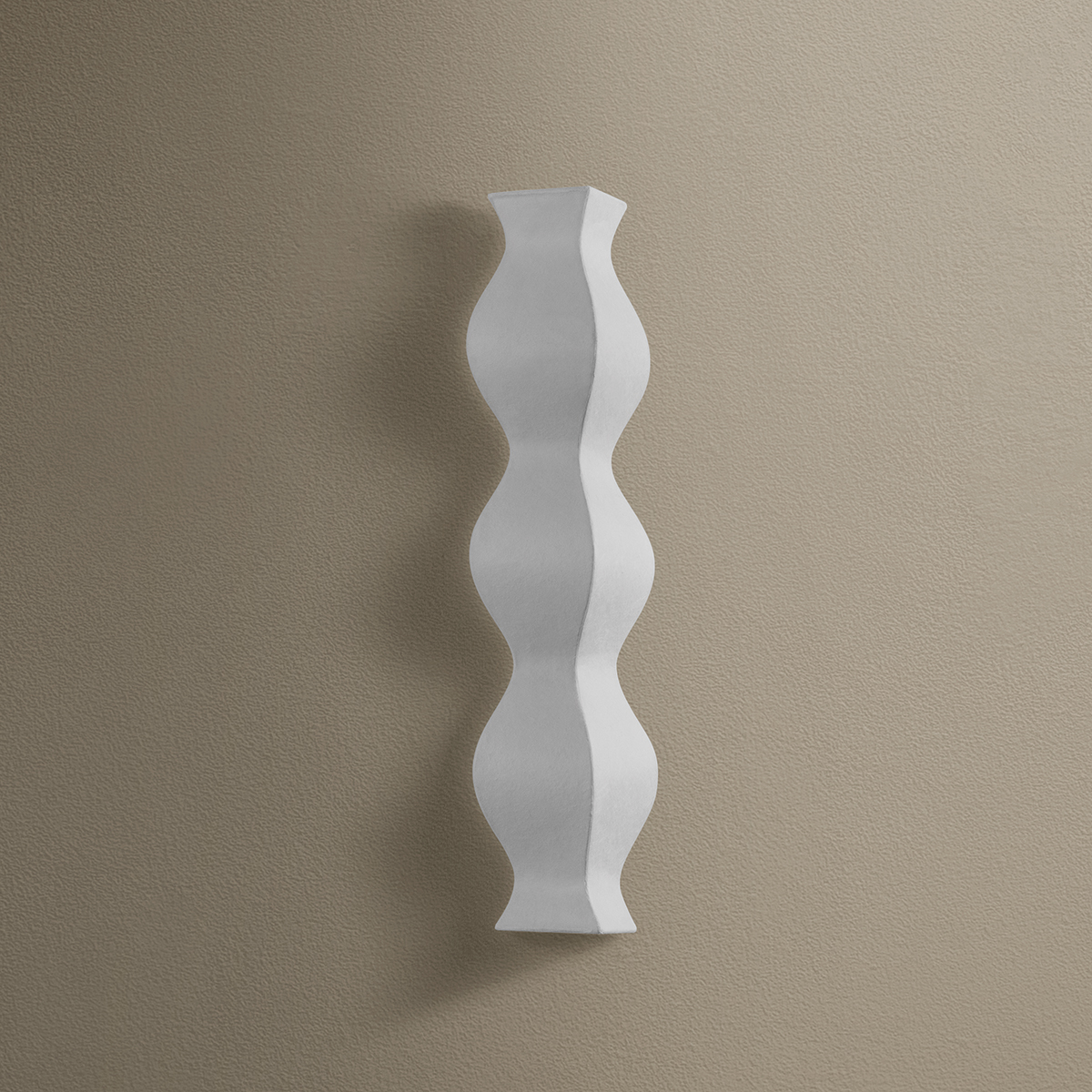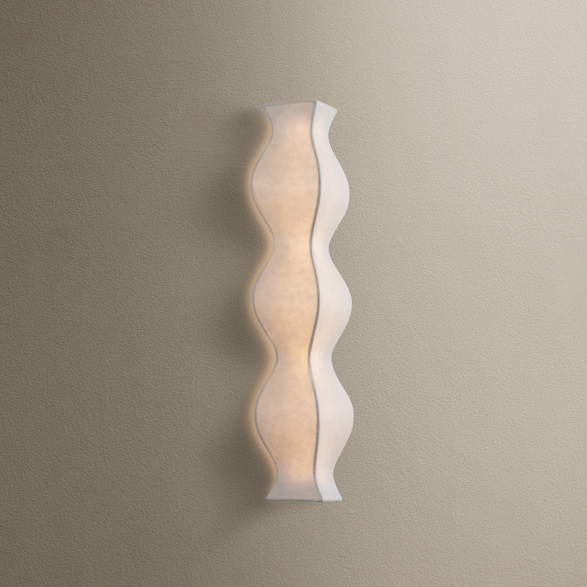Inspired by Brancusi’s totem sculptures, Brisa is a boldly geometric wall sconce with lots of personality. Creating visual tension, the soft, undulating shape of the outer edges contrasts with the hard, crisp ridge at the front of the shade. Behind each of the convex curves is dedicated LED which further emphasizes the rhythmic pattern of the fixture. Available in two sizes in a Natural Paper with a Soft White Finish.