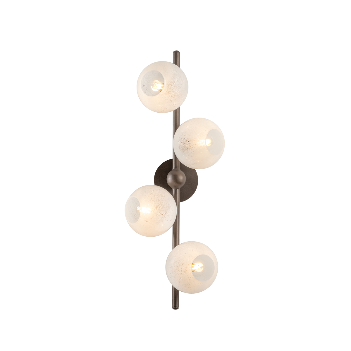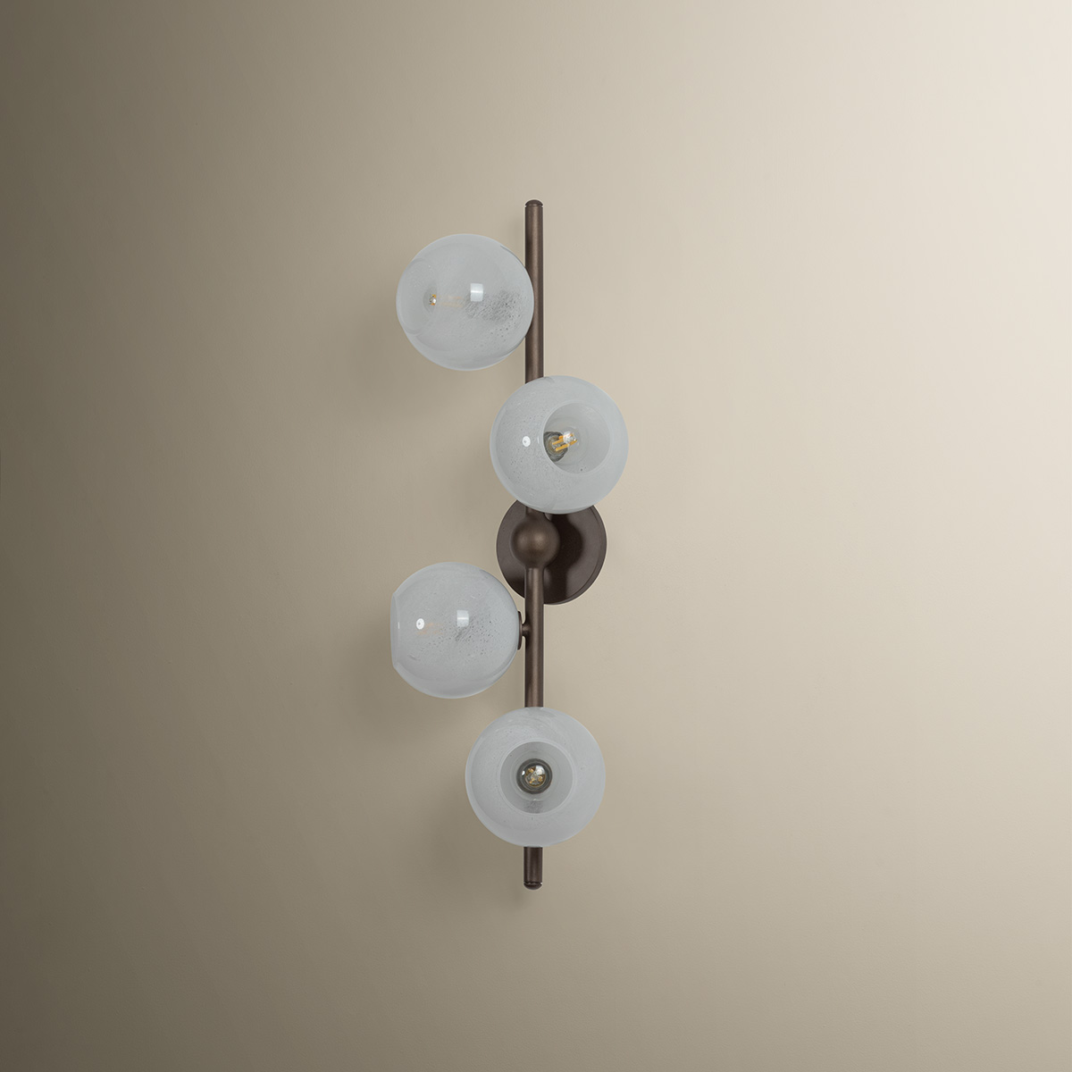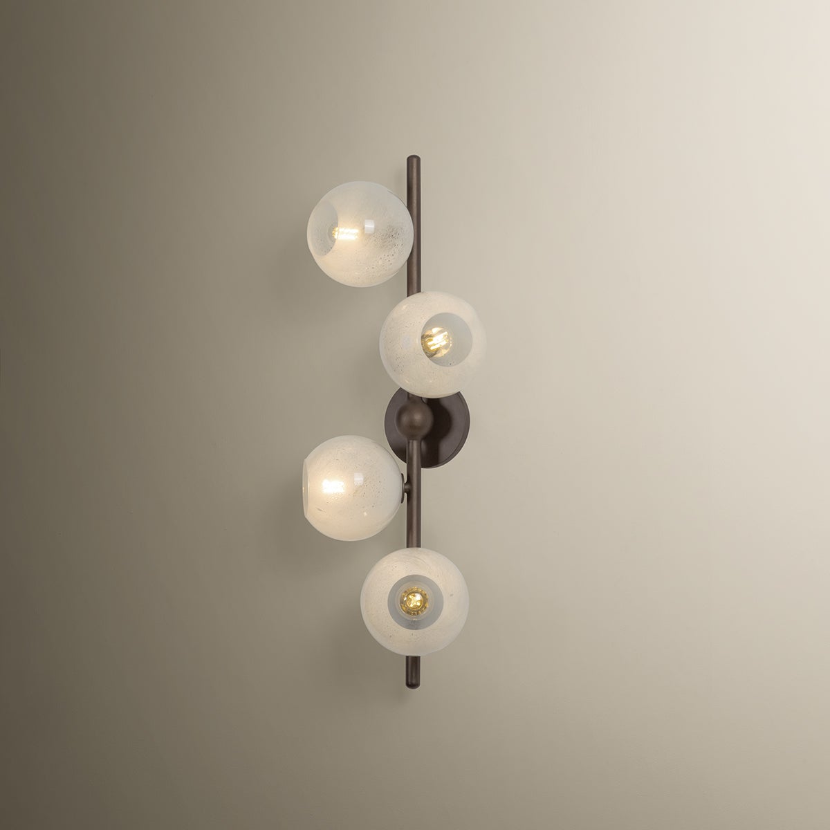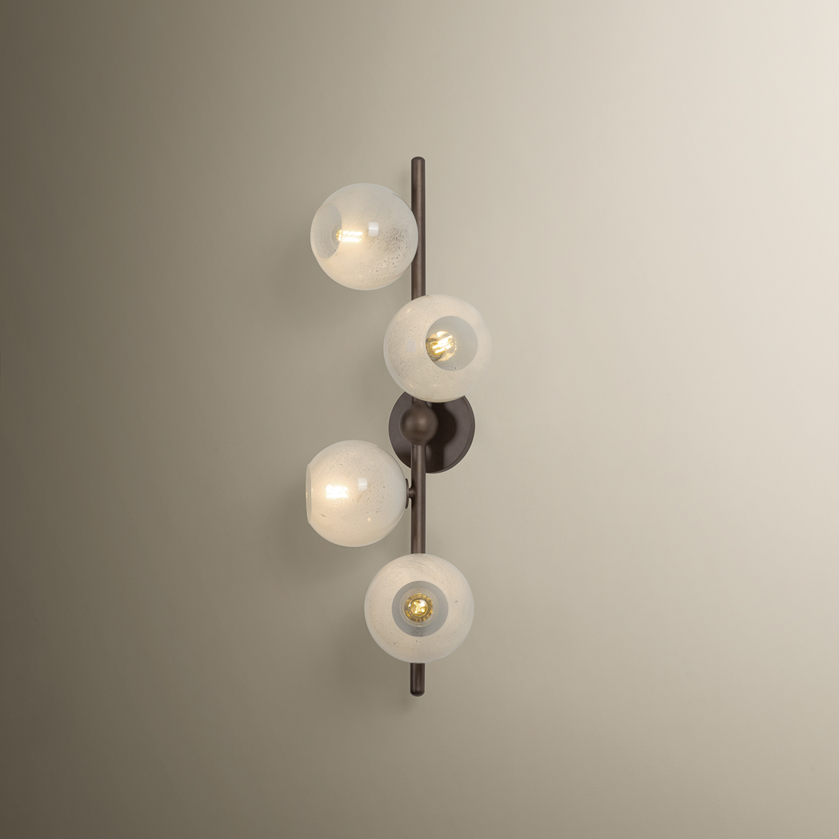 Sonny takes inspiration from a mid-century sputnik chandelier, reimagined with an organic, staggered rhythm. Finished in Bronze Leaf, slender arms extend outward, culminating in a softly glowing cloud seedy glass globe. The seemingly randomized arrangement creates a dynamic, almost celestial composition. Available as a 4-light sconce and a 12- or 20-light chandelier, Sonny serves as a stunning centerpiece for dining or living spaces.