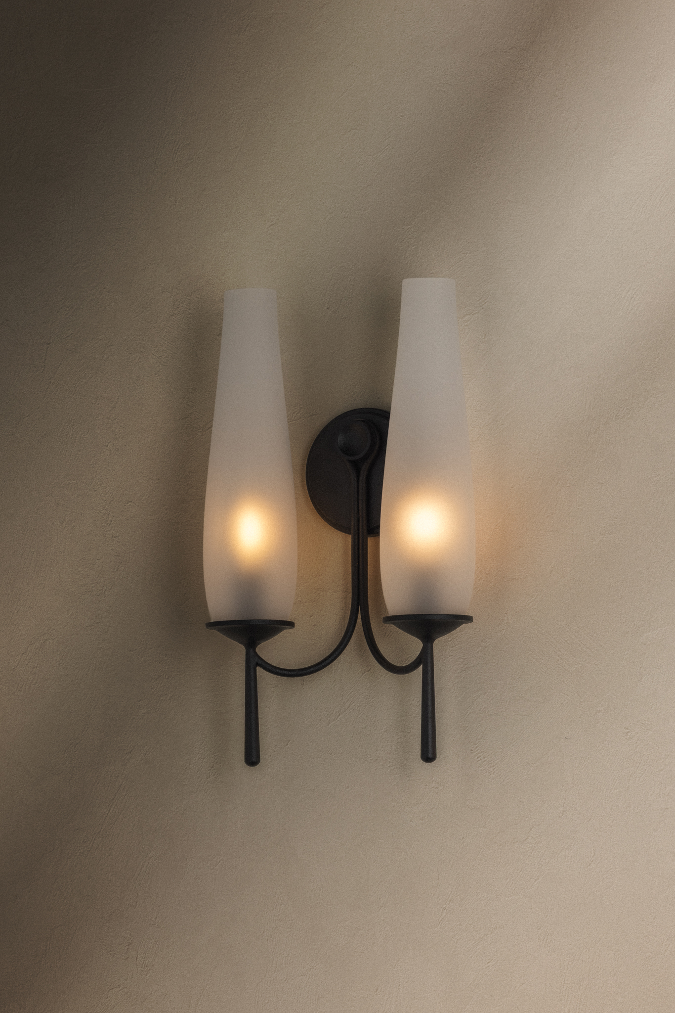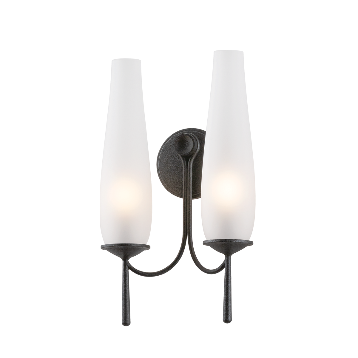 A refined take on the classic hurricane lamp, Legacy pairs gracefully curved arms with a rich wrought iron finish. Clear glass shades are etched on the inside to create a translucency that softens the light. Antique-inspired tail details add a touch of historic charm. Available as a 1- or 2-light sconce and a 5-light chandelier, Legacy brings timeless elegance to interiors.