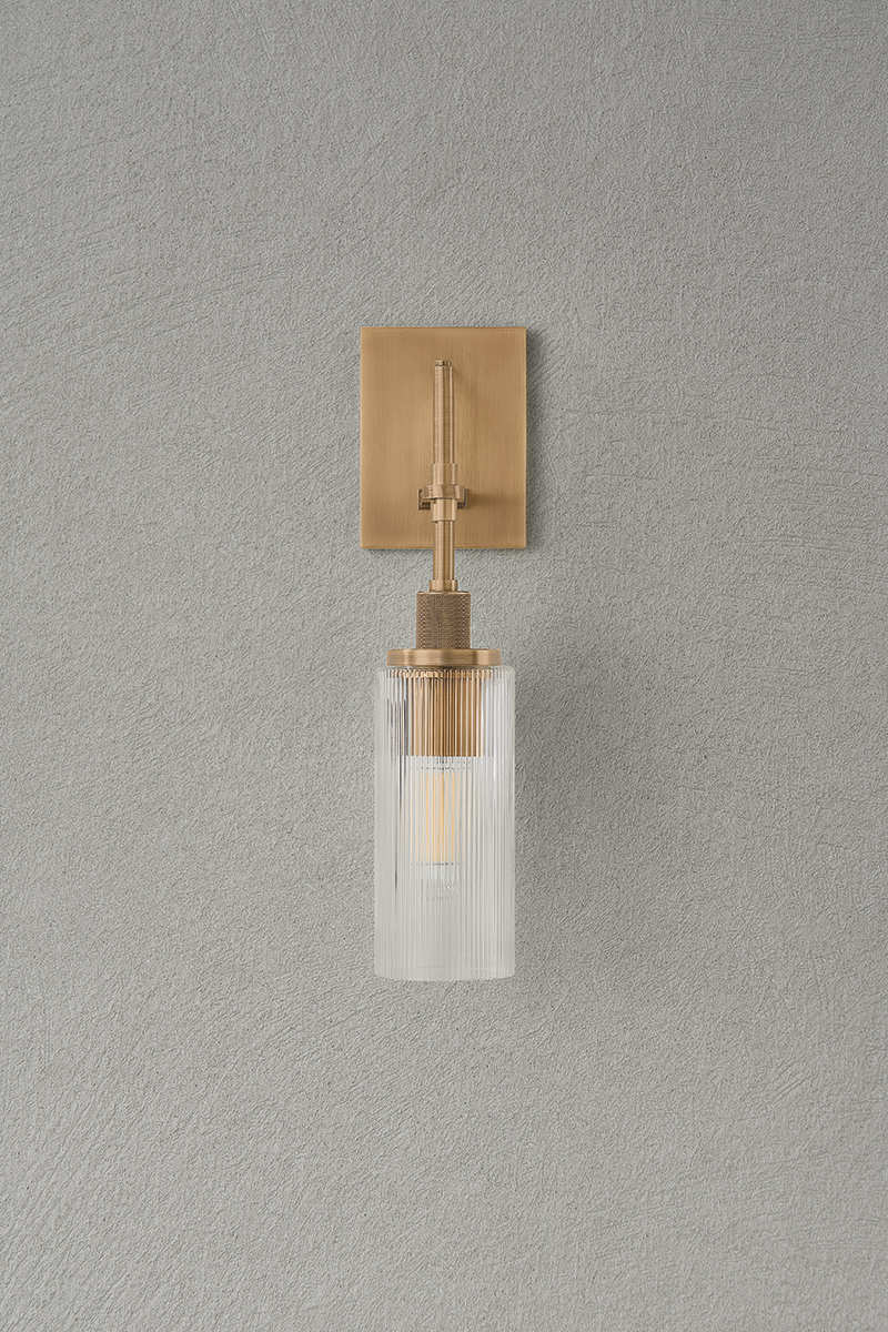 Drawing on the aesthetics of the Art Deco era, the Shenandoah sconce marries fluted glass with contemporary industrial metalwork to create an updated, style-forward silhouette. Providing 360-degree illumination, a cylindrical shade is suspended from a robust Patina Brass arm, which is corrosion-resistant in all weather conditions. Available in two sizes, Shenandoah introduces a touch of elegance to outdoor spaces.