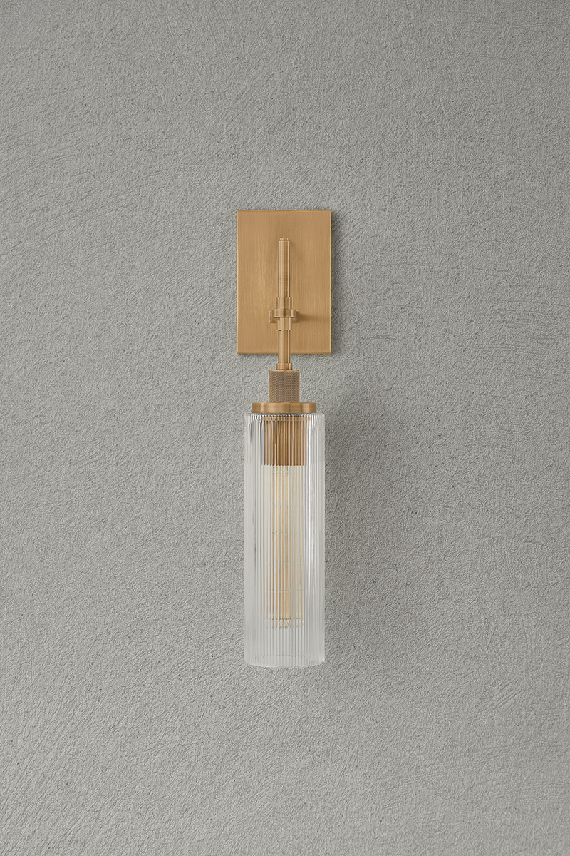 Drawing on the aesthetics of the Art Deco era, the Shenandoah sconce marries fluted glass with contemporary industrial metalwork to create an updated, style-forward silhouette. Providing 360-degree illumination, a cylindrical shade is suspended from a robust Patina Brass arm, which is corrosion-resistant in all weather conditions. Available in two sizes, Shenandoah introduces a touch of elegance to outdoor spaces.