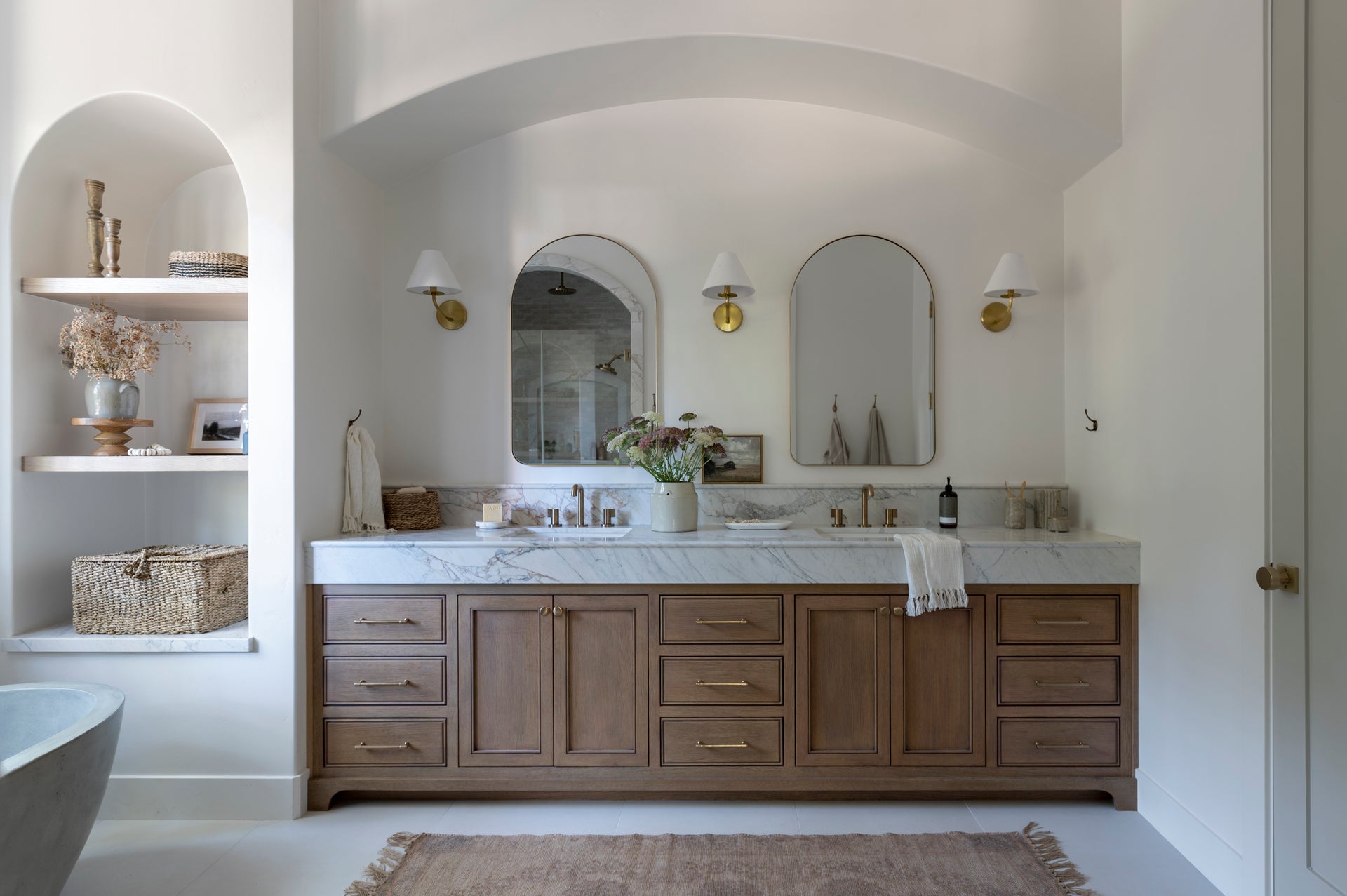 At first glance, Stacey is your classic shaded fixture, but a closer look reveals a familiar silhouette with subtle elevated details. In sconce form, a layered circular backplate with bias cut edge detailing is the base for a swooping square arm that slightly twists into knurled caps at either end. The chandelier highlights the same bias cut technique in an elegant stem. Stacey's stunning metalwork is available in three classic finishes.