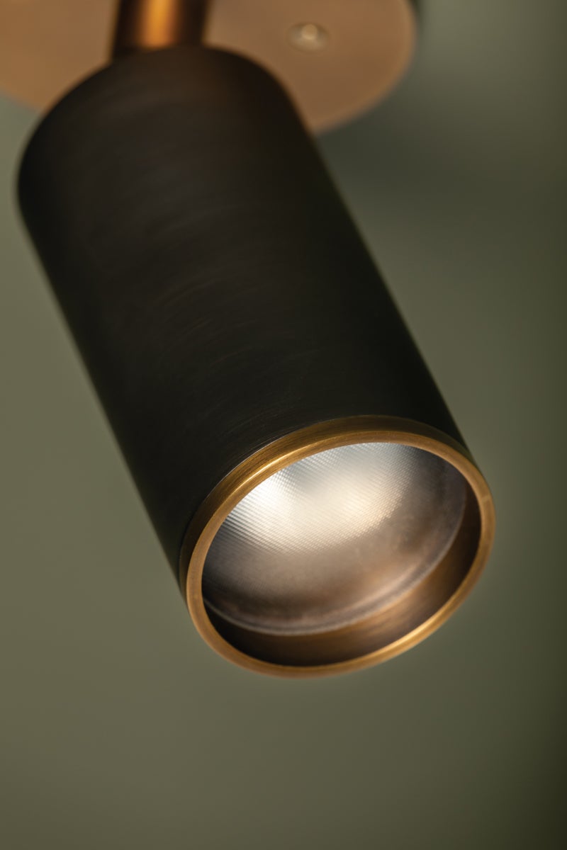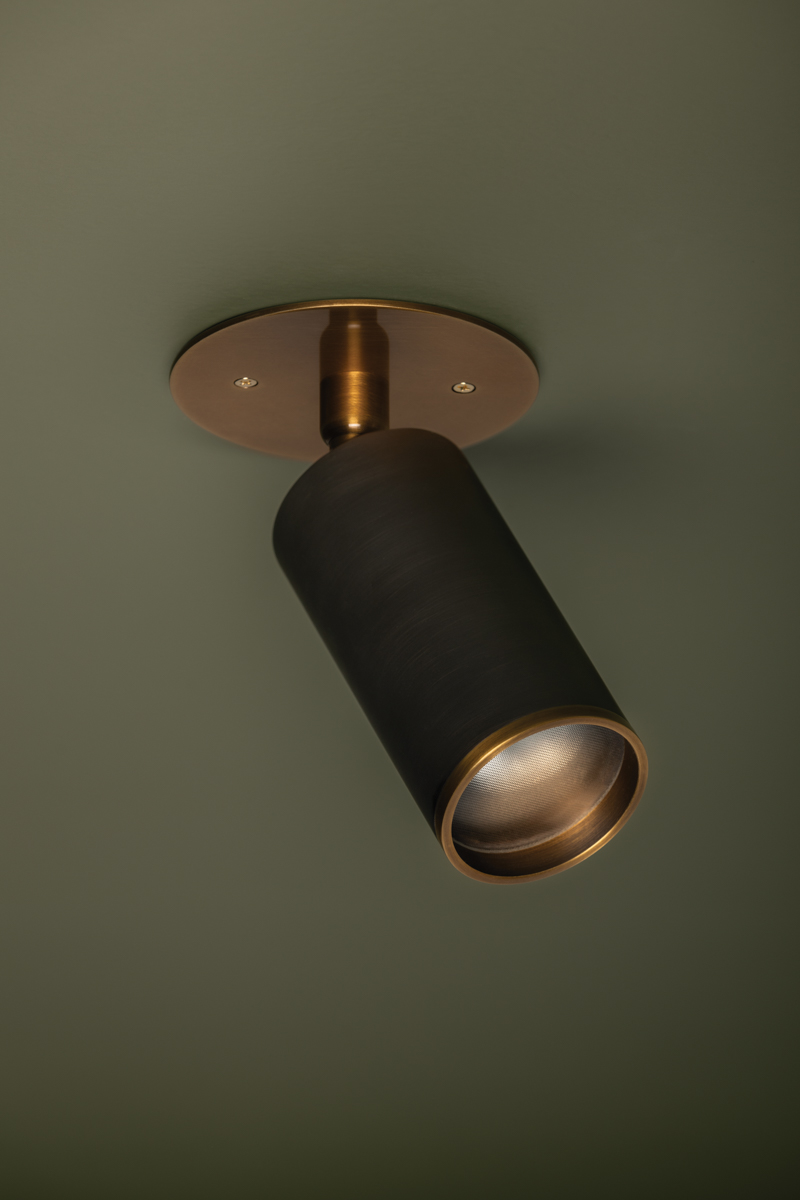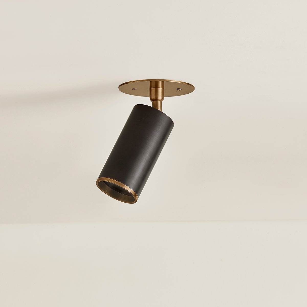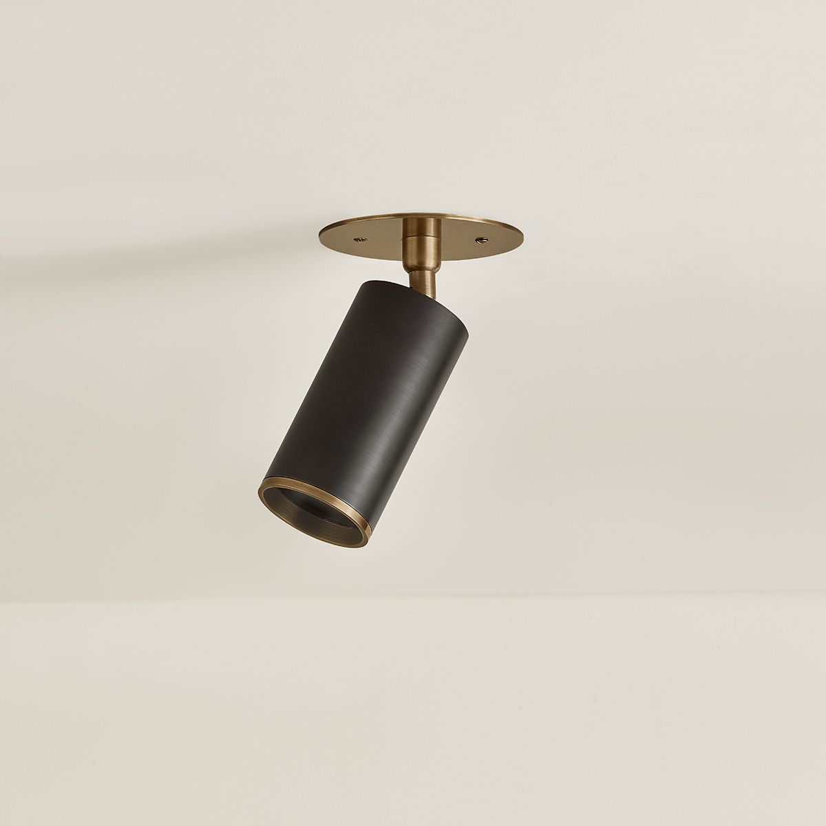 Form meets function in this simple, yet elegant fixture. Caleb serves as a smart alternative to traditional recessed lights, with its modern and sophisticated finish mix of Patina Brass and Bronze. Providing maximum versatility, it can be installed either as a sconce or a flush mount and pivoted to cater to various lighting needs ranging from general to task-specific illumination.