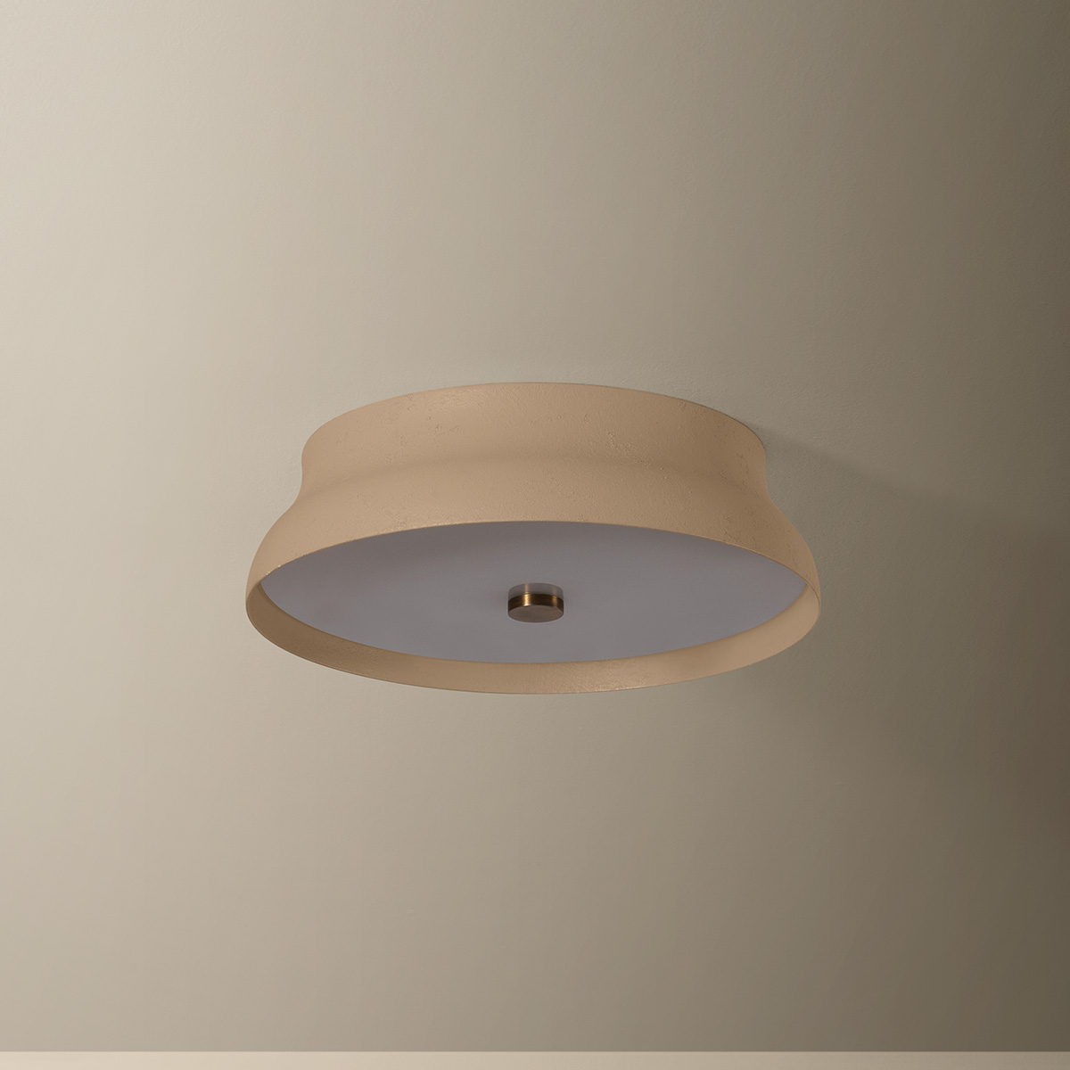 Shore takes the traditional flush mount silhouette in a new direction. The monolithic form flares subtly around a white glass diffuser, creating a soft, ambient glow. Available in two sizes with either a cream or slate gesso finish, it brings a contemporary point of view to entryways, living rooms, and hallways.