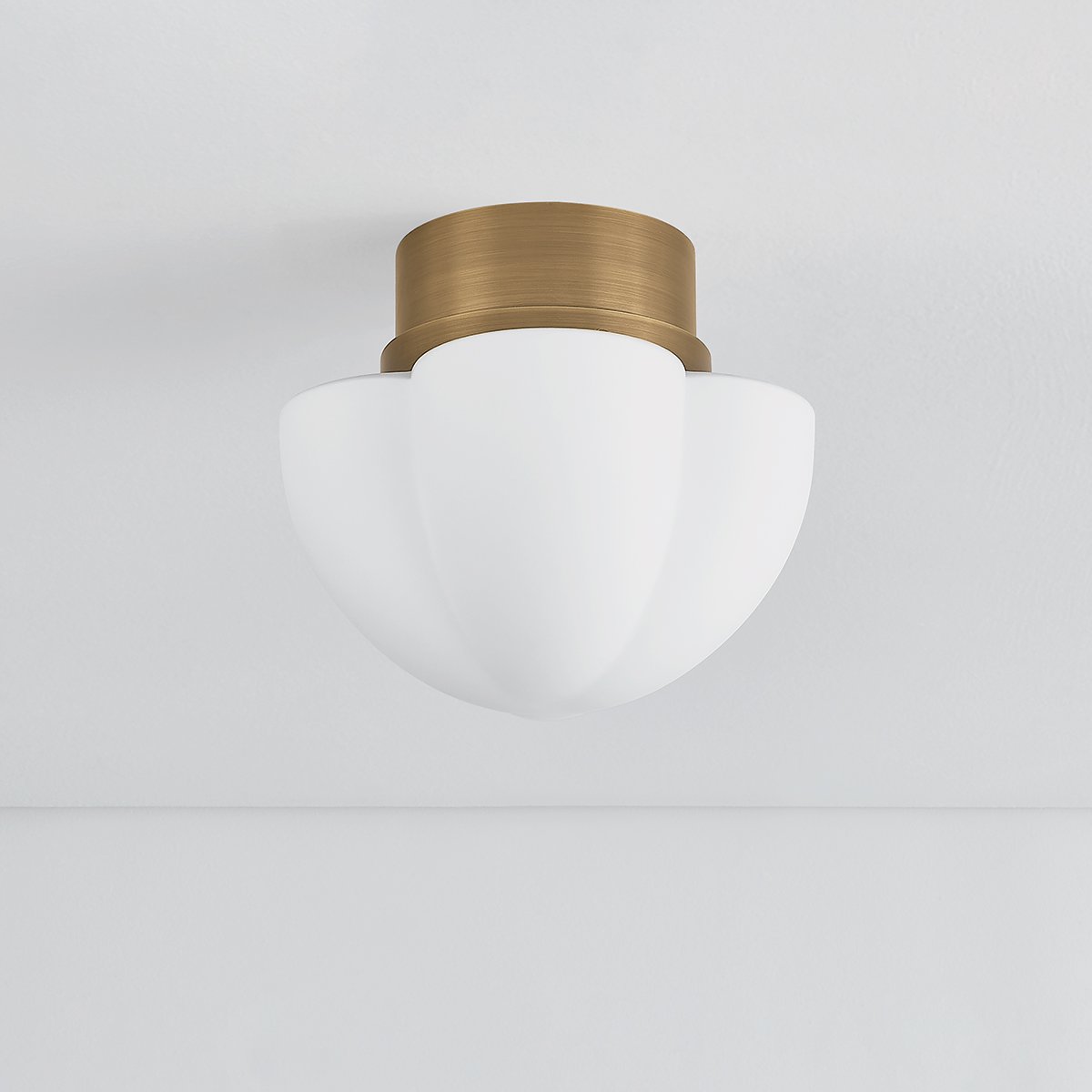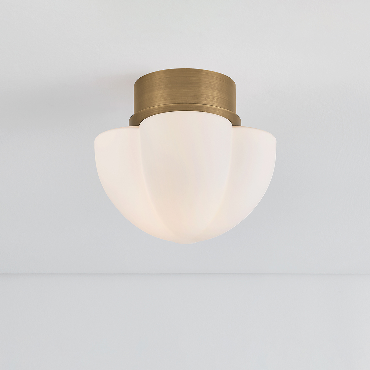 A stylish alternative to can lighting, Seabrook introduces thoughtful forms to spaces that deserve more than a passing glance. Available in two sizes, this charming flush mount features a gently scalloped botanical shade that adds a soft touch to any room. The Opal Matte glass creates a diffused glow, while the Heritage Bronze finish of the metalwork lends a warm tone. Designed as a transition piece, Seabrook enhances vestibules between bedrooms and bathrooms as well as landing spaces.