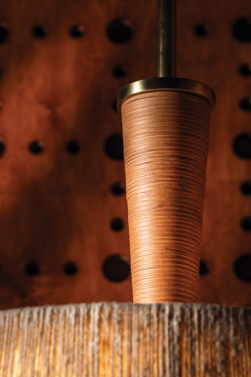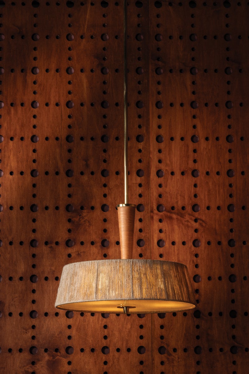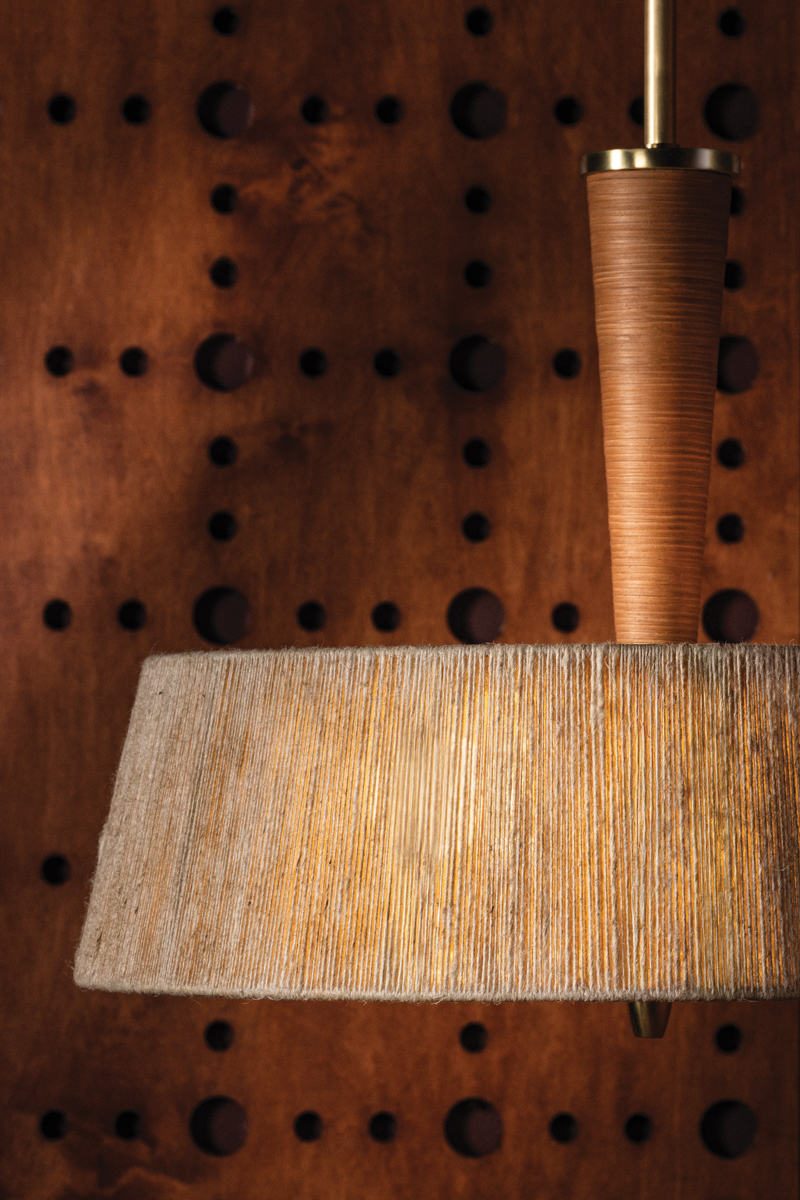The George family of ceiling lights are boldly scaled and texturally inviting. The combination of the banana leaf string shade, rattan wrapping, and etched clear glass gives each fixture a bohemian feel while remaining sophisticated. The natural, tonal hues enhance the rustic effect, while the Aged Brass metalwork is a timeless finish. Suitable for larger spaces, George introduces an organic freshness to entries and dining areas.