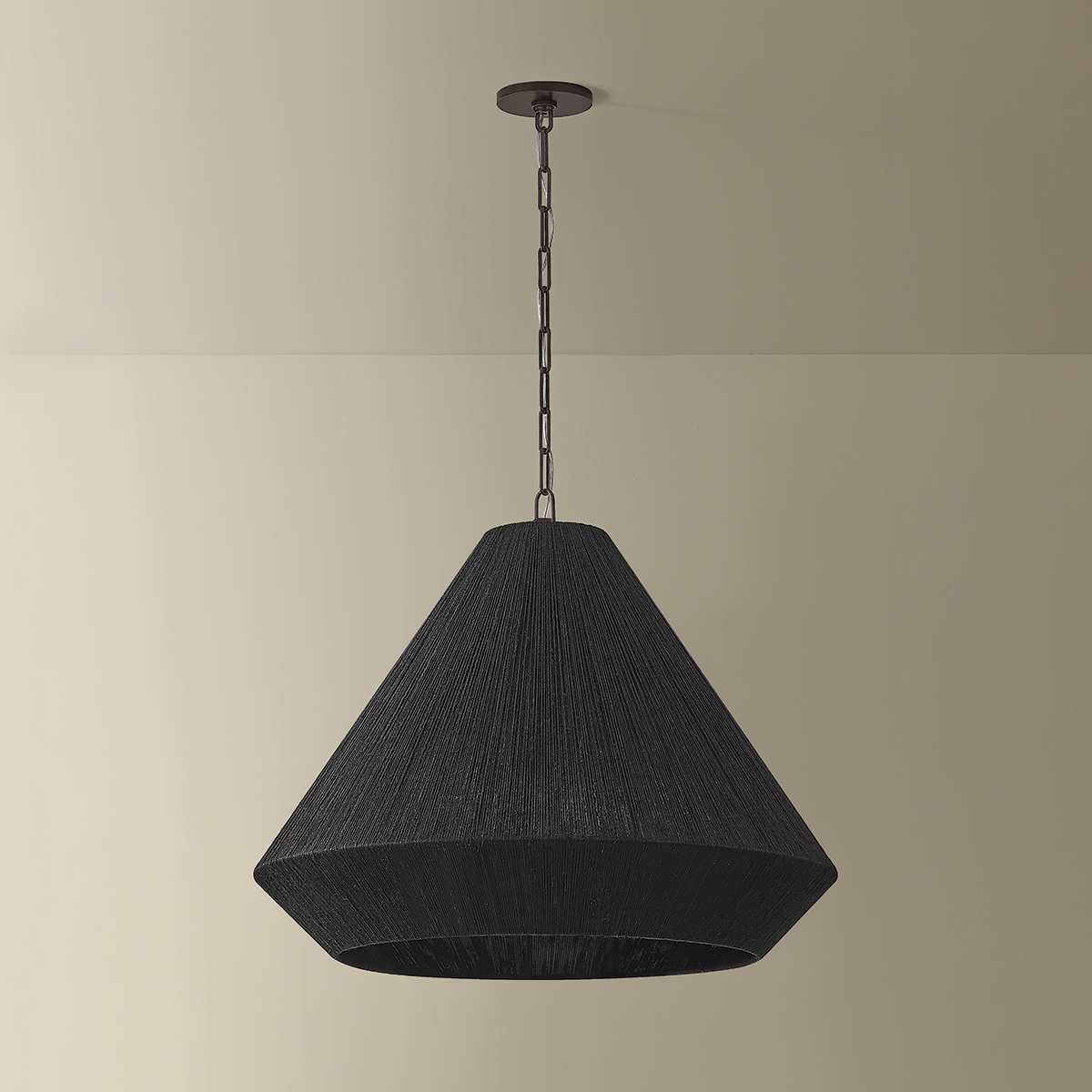 Commanding attention, the Keats pendant features a generous scale and tailored use of natural materials. A central candle cluster fills the conical shade with a warm glow, accentuating the beauty of the woven jute. Keats is available in two sizes and two material combinations: Patina Brass with natural bleached jute for a light, organic feel, or Bronze with black jute for a bolder contrast.