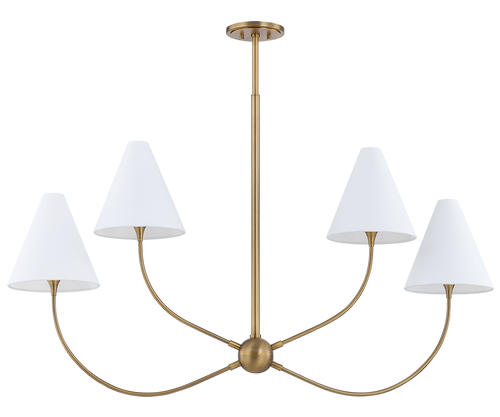 A nature-inspired take on timeless silhouettes, Evermore is defined by its airy, voluminous shape, graceful arcing arms, and petite off-white linen shades. Each fixture appears to reach upward—evoking the gentle growth of wild mushrooms. A Patina Brass finish adds warmth and vintage polish. Available as a 1-light sconce, 6- and 10-light chandeliers, and a 4-light linear, Evermore is a sculptural lighting fantasy for the modern home.