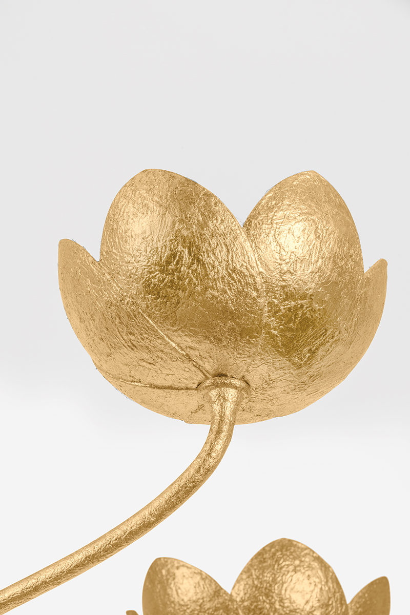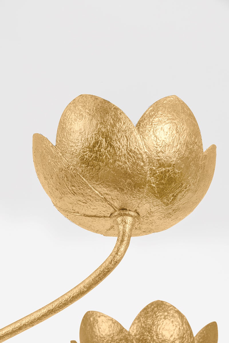 A fresh take on a botanic motif, the Arcata family features sculptural, romantic silhouettes with highly tactile, hand-worked finishes. The gentle sweeping arms transition from square to round, creating a dynamic look that complements the floral forms. Arcata is available as a 1-light sconce and 6 or 8-light chandeliers with the choice between contemporary Gesso White or a luxurious Vintage Gold Leaf finish.