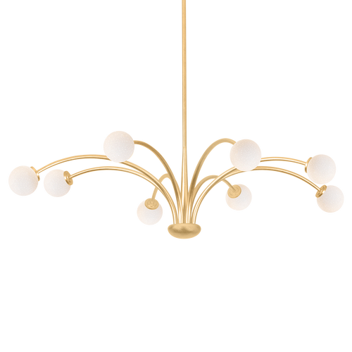 Pearl-like opal-seeded glass orbs perch on the ends of sculptural stems in the playful Orinda. Drawing from 1920s aesthetics, this fixture takes a simplified botanical silhouette and creates a whimsical statement. The Vintage Gold Leaf finish complements the overall bright, airy look. Enjoy the beauty of Orinda in various formats, including a 1-light sconce and 6 and 8-light chandeliers.