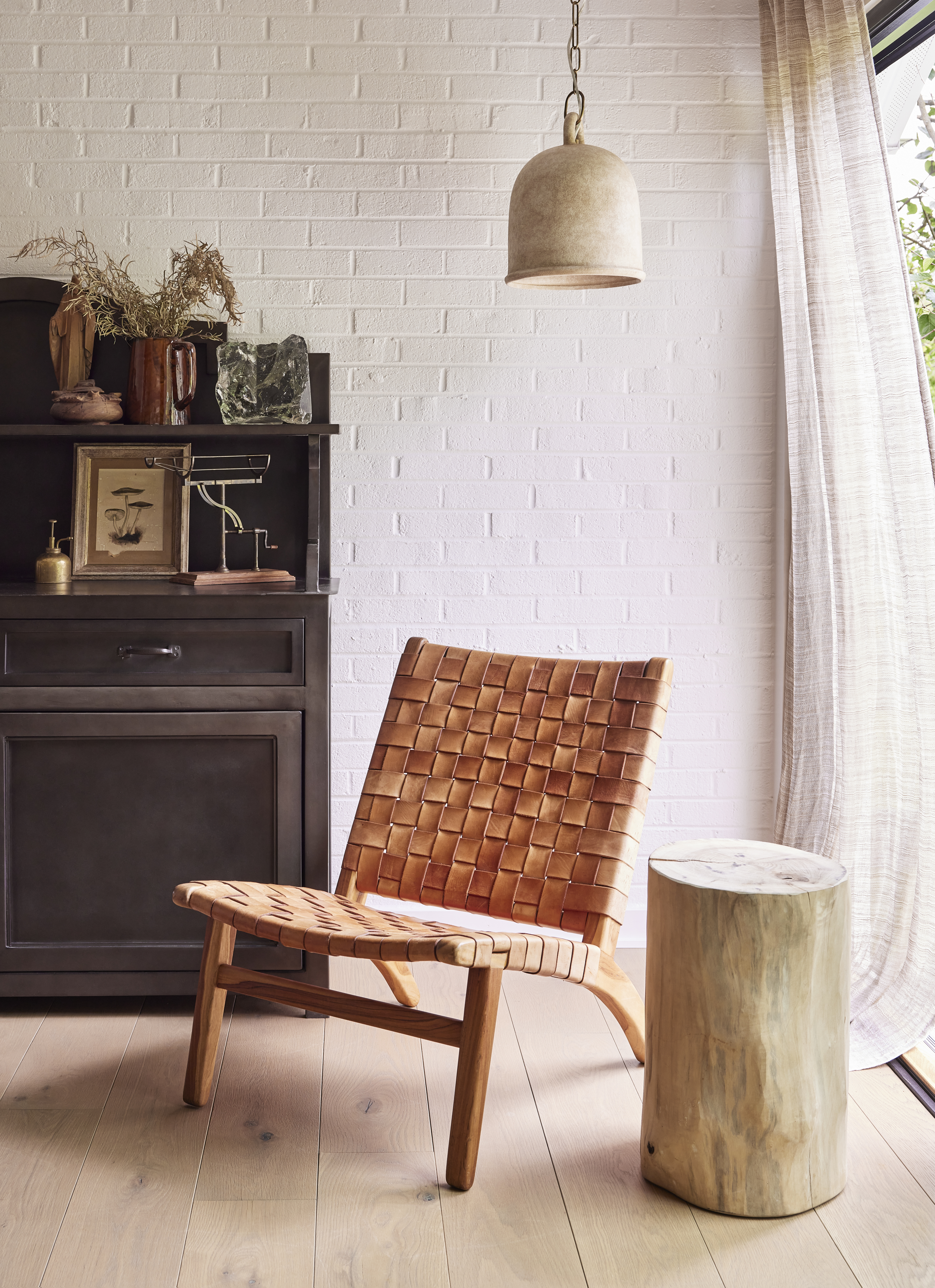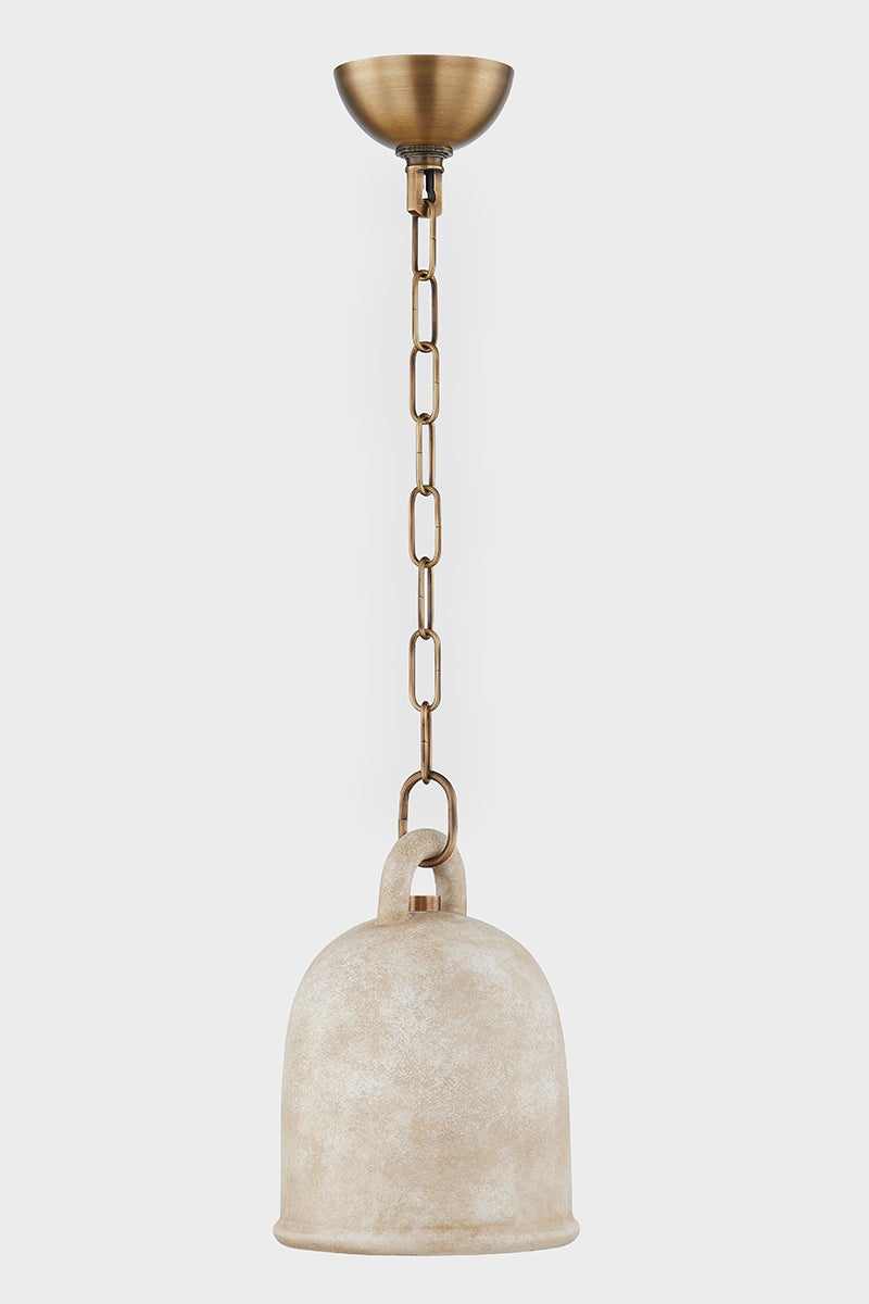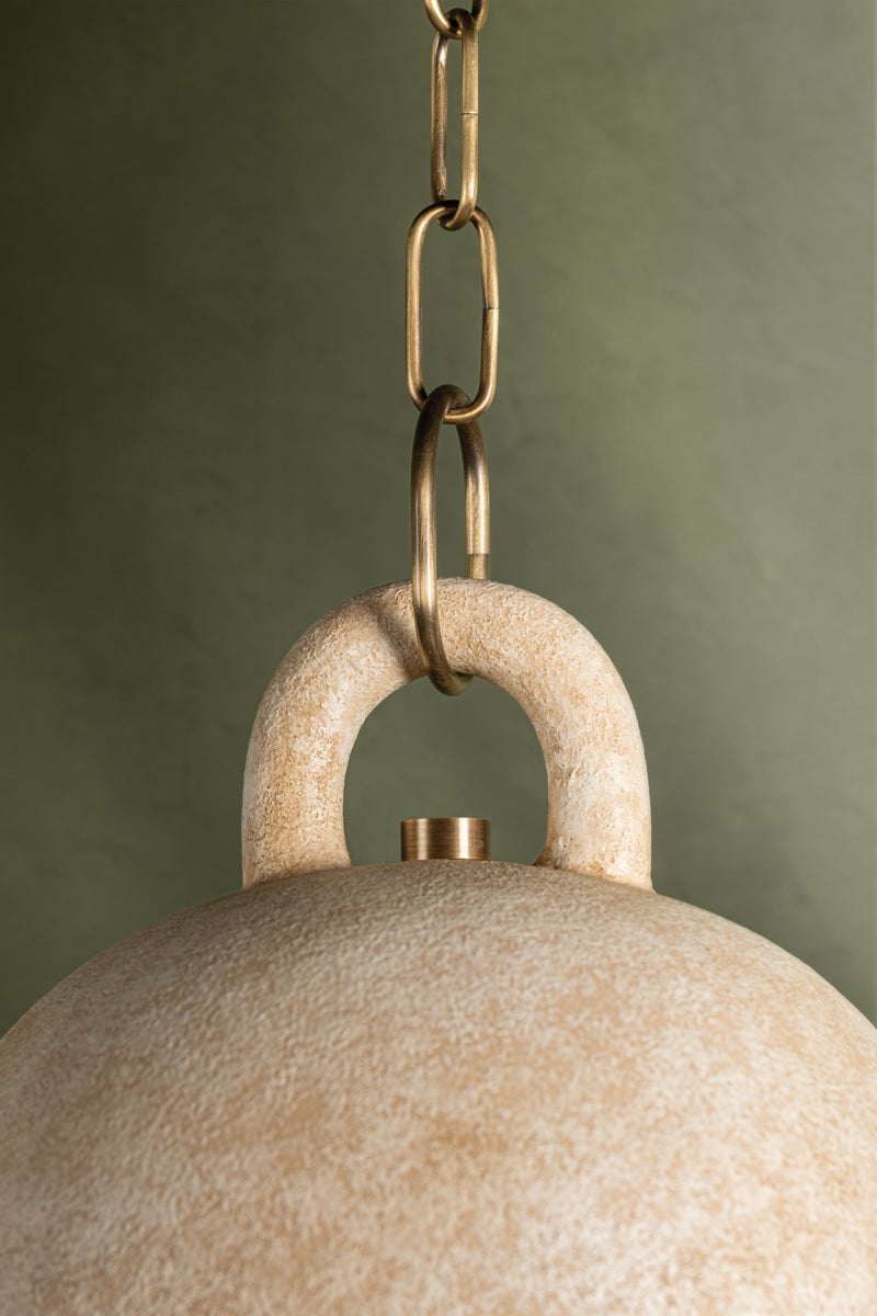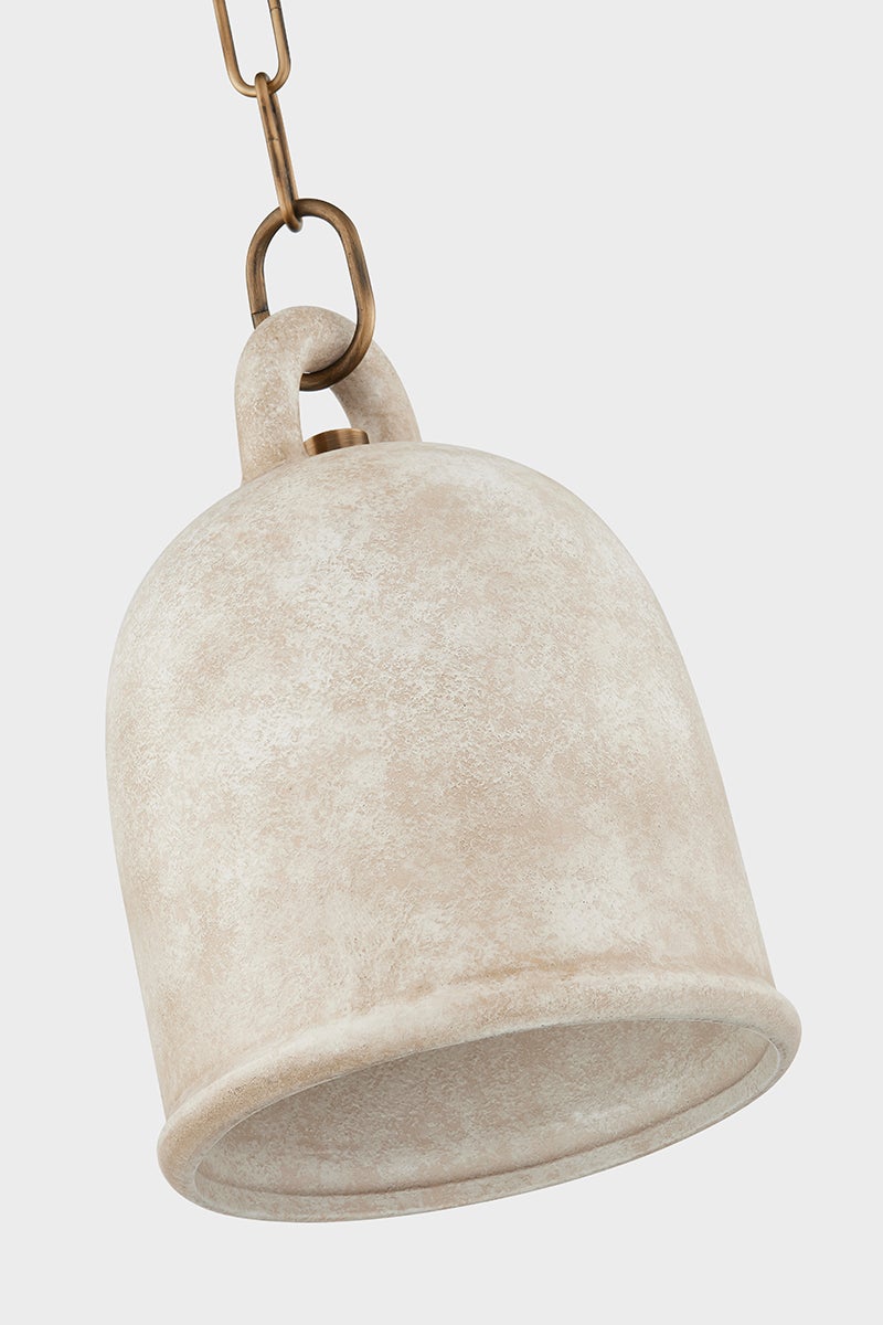 Relic is the epitome of earthy sophistication. The White Ceramic bell-shaped pendant is highly textured, creating a modern form with a rustic feel. The shade fills with a warm light and the curved handle at the top is both functional and beautiful. Gorgeous styled alone or in multiples. Part of our Lauren Liess collection.
