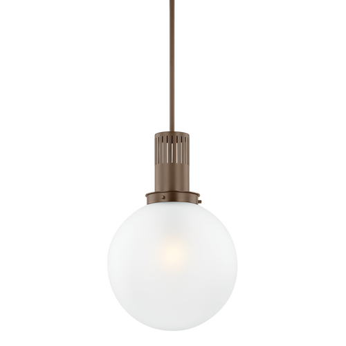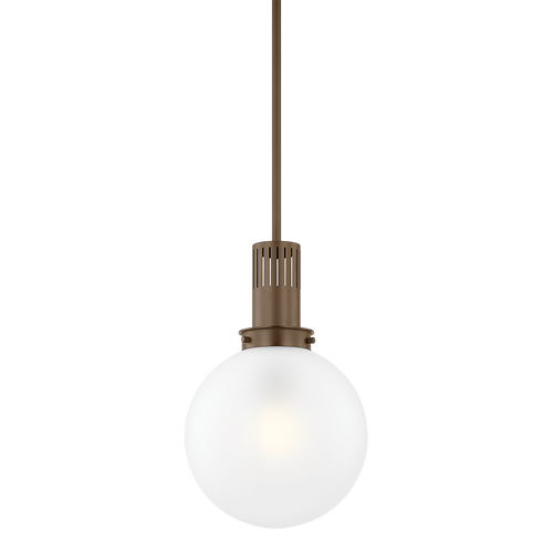 Tobias is a recognizable basic with a cool, modern feel. The oversized glass globe has been internally etched to add texture, but the real star of this pendant is the industrial-style chimney. Perforated with elongated slats, it sets the tone with either a Patina Brass or Bronze finish. This modernized retro staple comes in two sizes to suit your spatial needs.