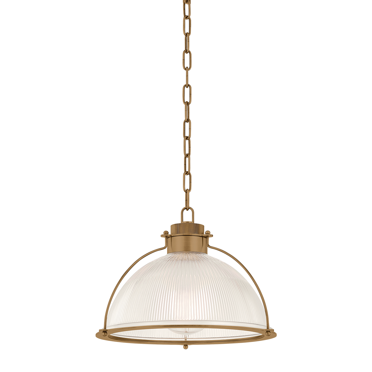 Inspired by classic RLM silhouettes, Glint reimagines industrial design with character and vintage-inspired details. The ribbed Holophane glass shade adds texture while softly diffusing light. Three suspension arms work to create a clean, structural frame that emphasizes balance and craftsmanship. A Patina Brass finish enhances Glint’s retro aesthetic.