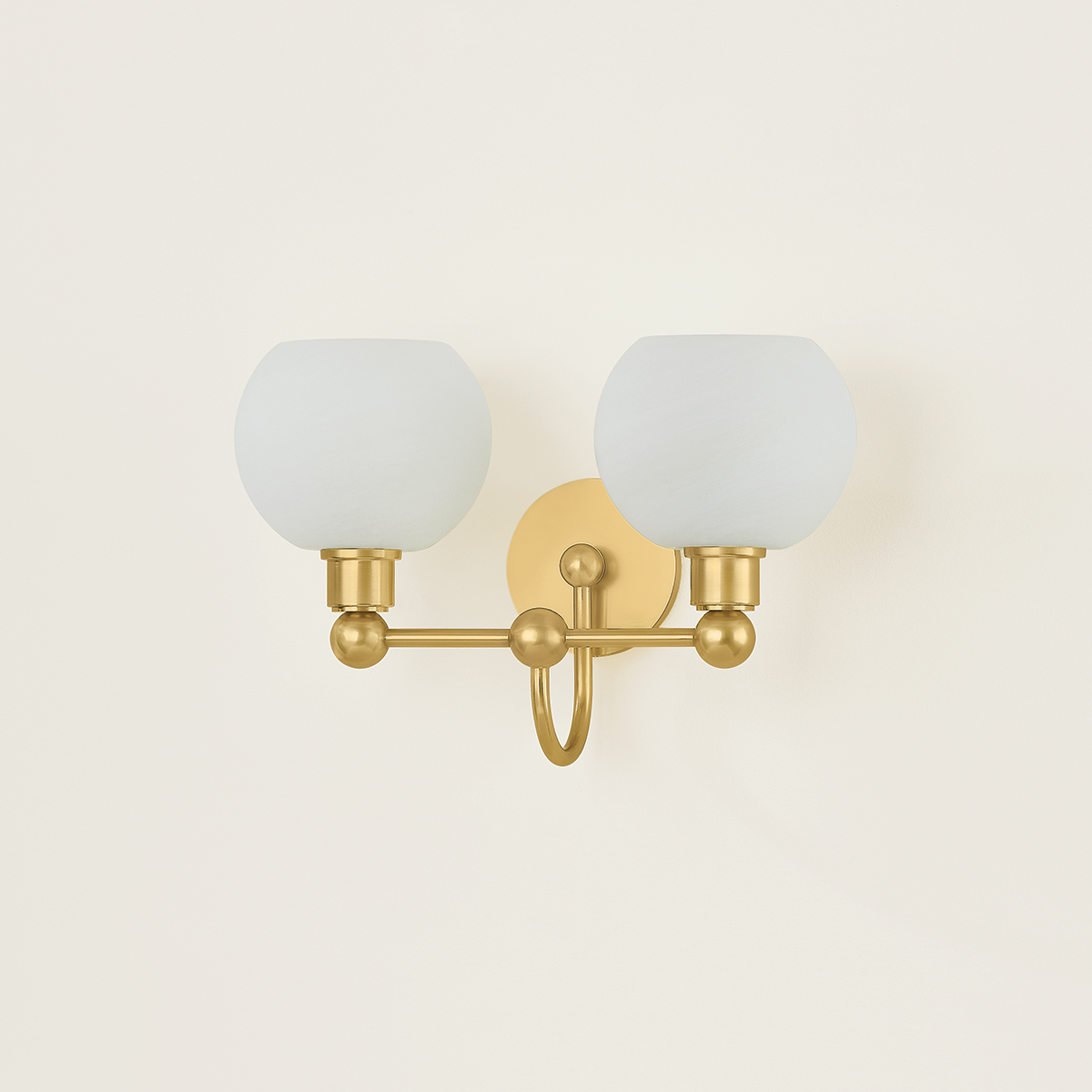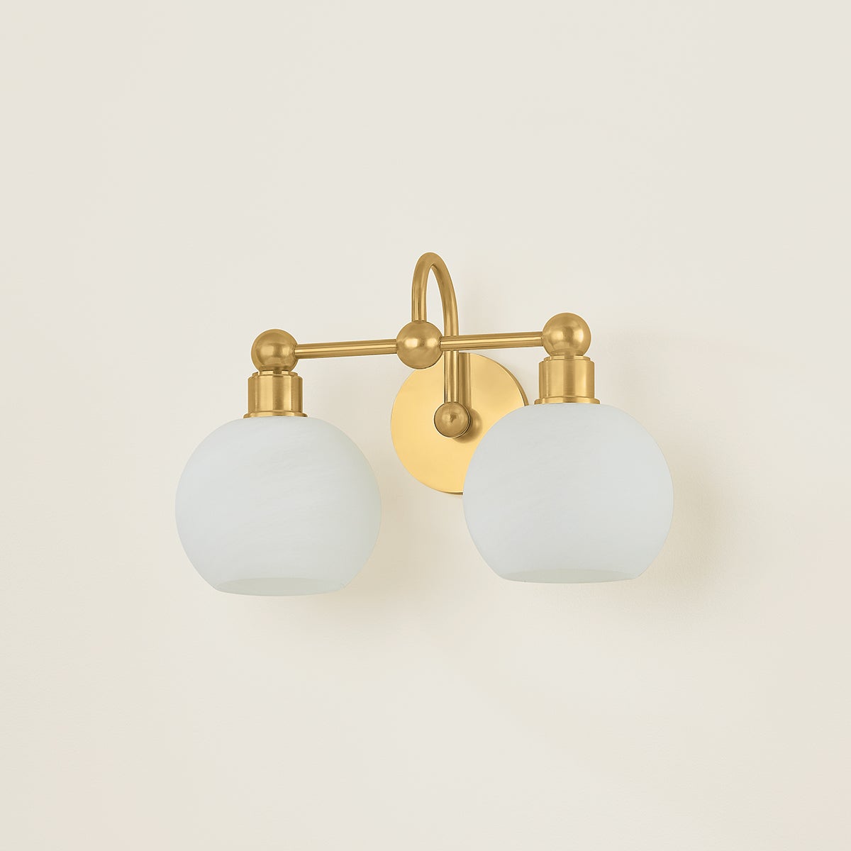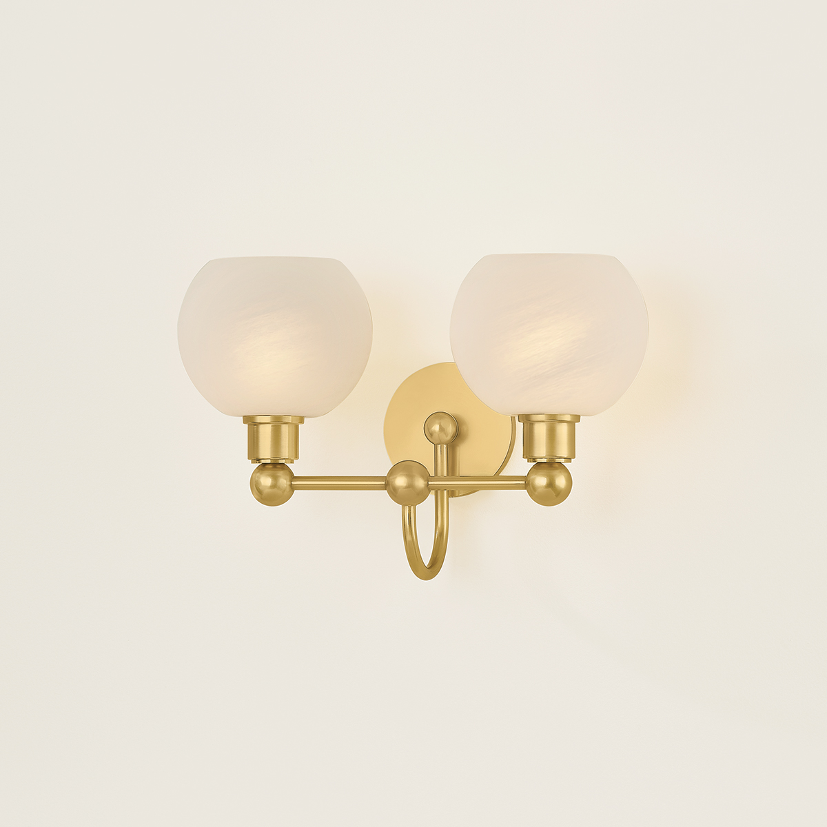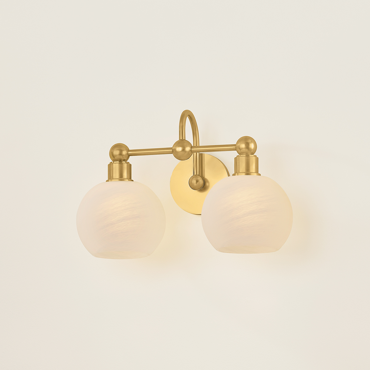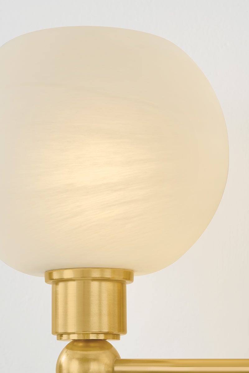 There’s a sense of visual ease in the continuity of circular forms in the Jerica bath light. The silhouette is understandable and usable, yet elevated by decorative sphere details, curved lines, and matte cloud glass globes. Choose from a gleaming Aged Brass finish, or opt for Old Bronze for a more modern take. Whether as a sconce or bath bar, Jerica illuminates your daily routines with serene style.