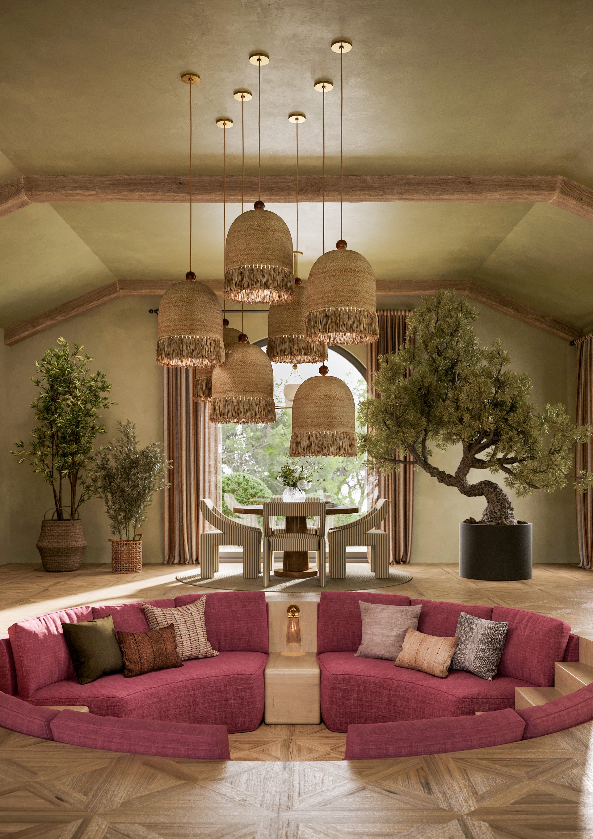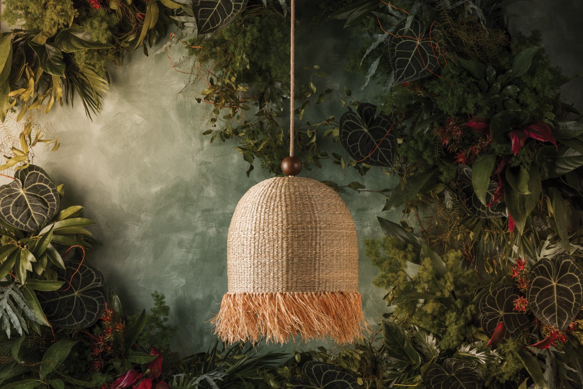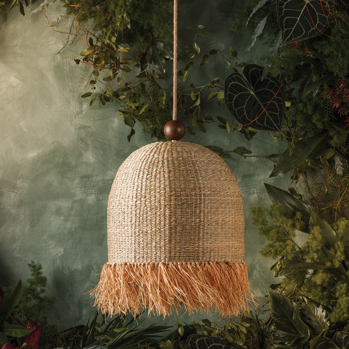 Named after Mandy Cheng’s college roommate, the Sheri family features timeless silhouettes accented by a statement fringe detail. The shade's natural woven fibers serve as a textural focal point evocative of their days spent together in Santa Barbara. Sheri makes a relaxed, playful statement in modern spaces by casting a soft, inviting glow that’s perfect for gathering with friends.